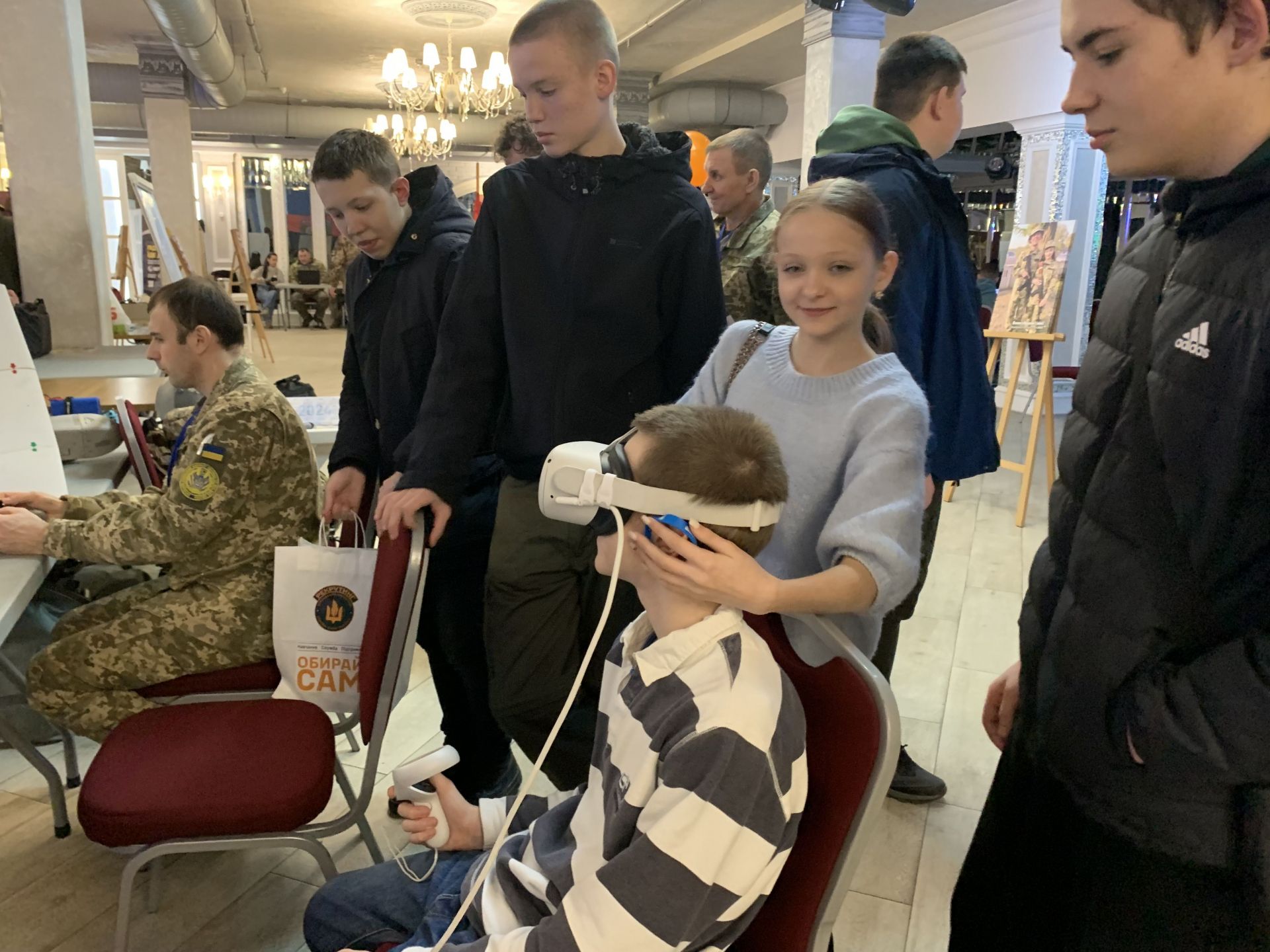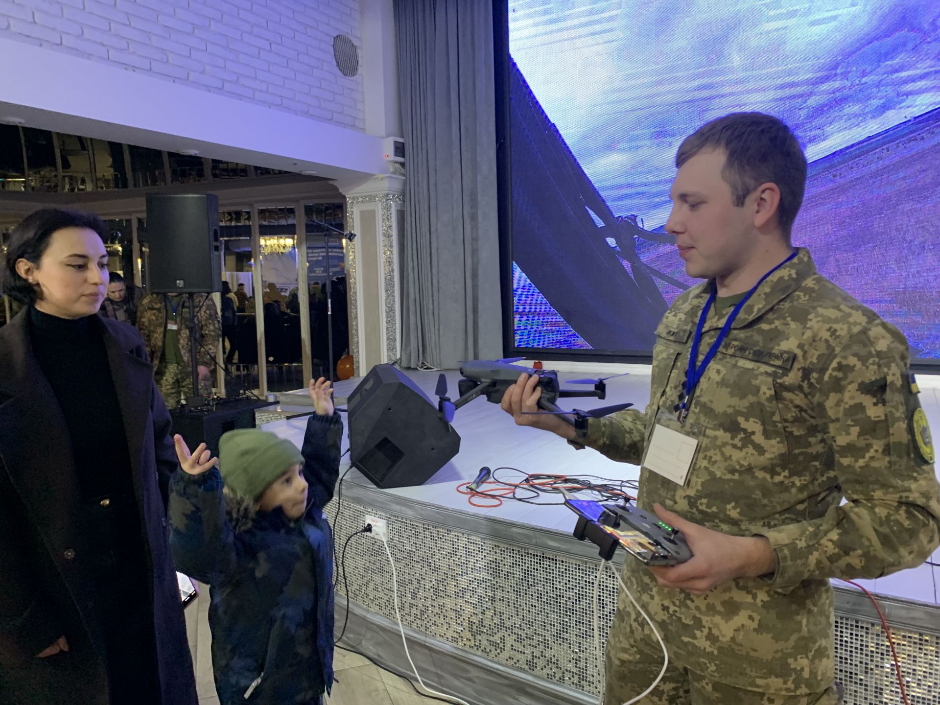 І найбільше люди купчилися біля хлопців у військовій формі, які представляли Харківський Національний університет. Курсанти розповідали про різноманітне обладнання, пристрої, давали приміряти на себе обмундирування, яке перетворювало звичайного на вигляд хлопця в супер героя, так, принаймні, сказав про свого татуся 4-річний малюк. Інший хлопець після симуляції, де він літав fpv-дроном, вирішив, що і справді ним стане.
