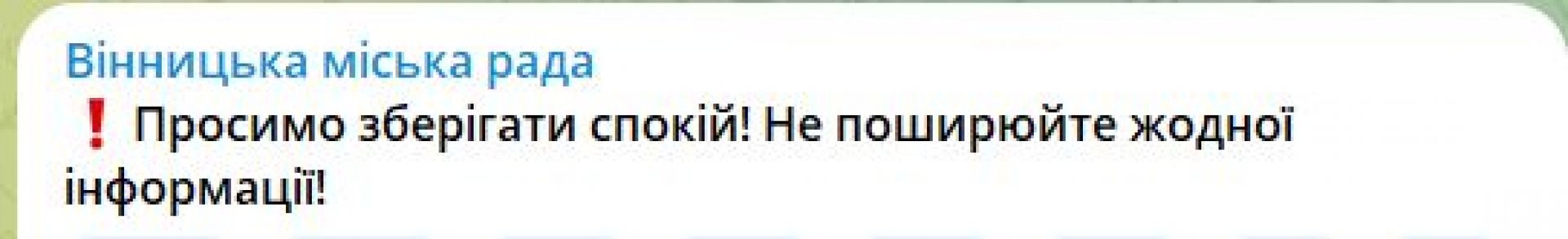 — Просимо зберігати спокій! Не поширюйте жодної інформації! — зазначають у Вінницькій міській раді.