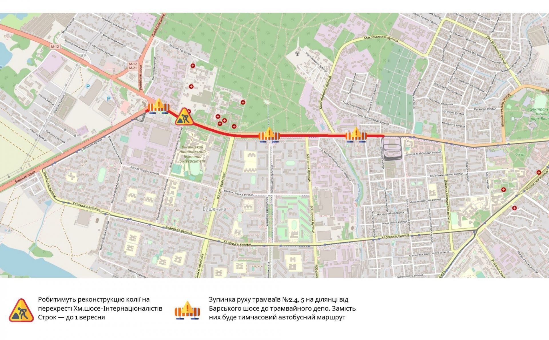 — Щоб швидко виконати роботу потрібно буде перекрити повністю рух трамваїв на цій ділянці десь на 1,5-2 тижні. Трамвай буде розвертатися на території трамвайного депо та їздитиме на Барське шосе тільки через Вишеньку, — розказав гендиректор «Вінницької транспортної компанії» Михайло Луценко. — А поки триватиме перекриття ми, можливо, зробимо тимчасовий автобусний маршрут. Як, наприклад, робили з автобусом №15
