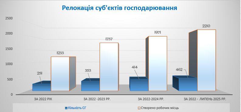 З початку повномасштабного вторгнення підприємці-переселенці створили 2 тисячі 210 робочих місць, з них 31 – за попередній місяць.