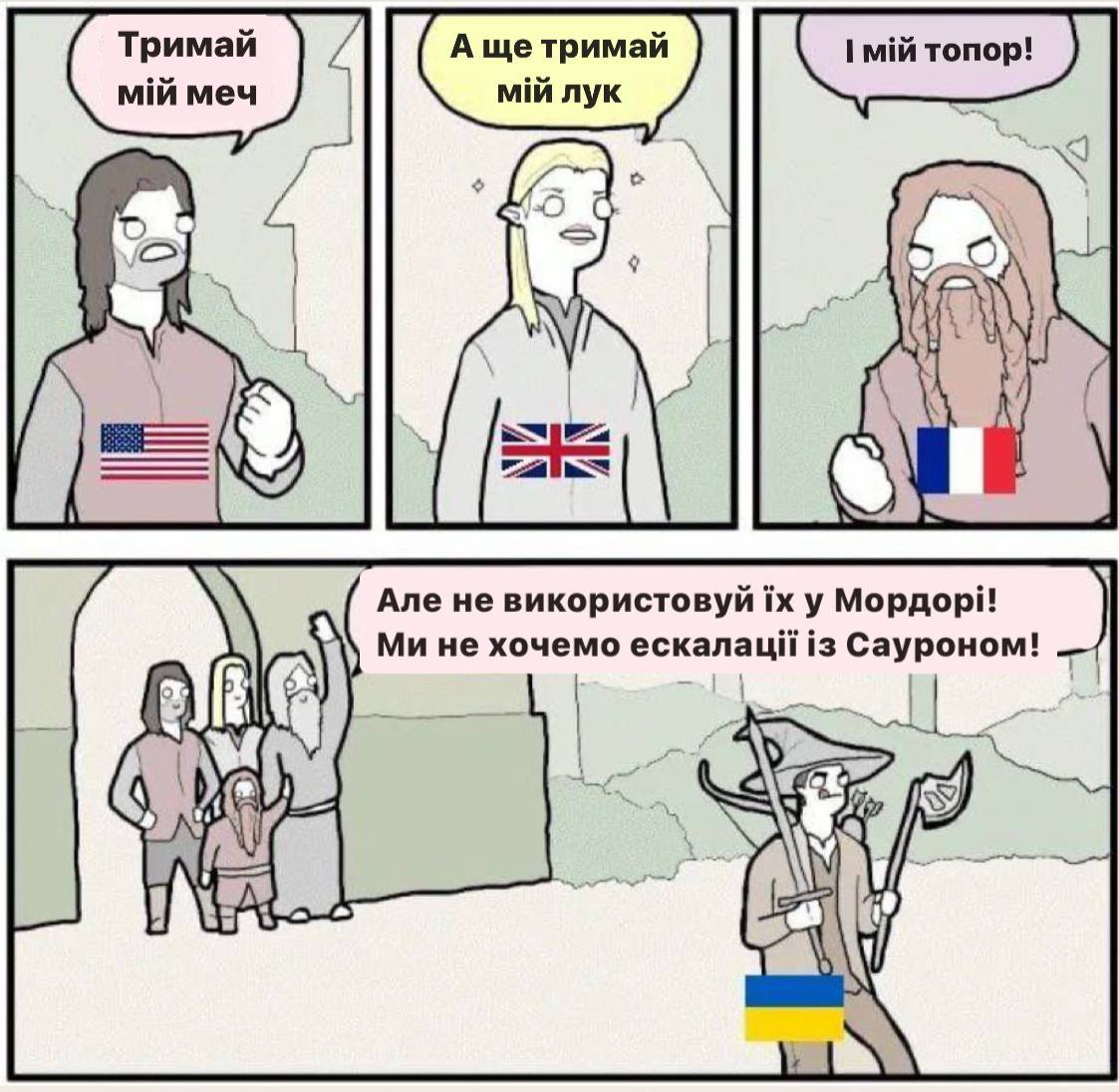 - Пригадуємо головне за тиждень, що минає, переглядаючи меми: дозволи та занепокоєння союзників на удари зброєю по росії, поновлення на посаді Фаріон, зняття браслету з Князєва.