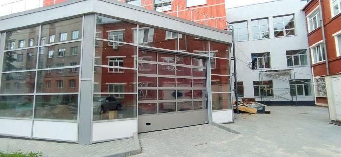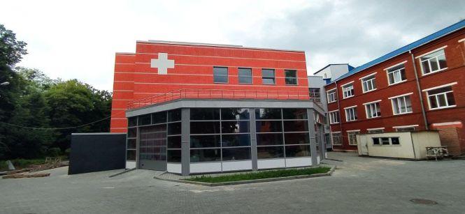 Новий корпус лікарні добудований. Будівельний паркан прибрали, територію навколо виклали плиткою. Споруда червоного кольору з білим «хрестом» має двоє «гаражних» воріт замість звичного дверного проходу — машина «швидкої» з пацієнтом заїжджатиме просто у медзаклад.