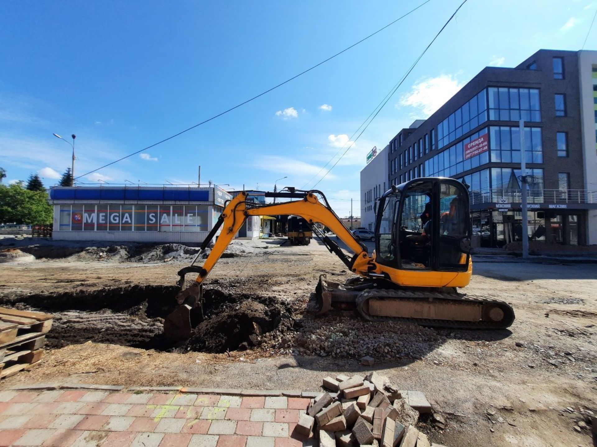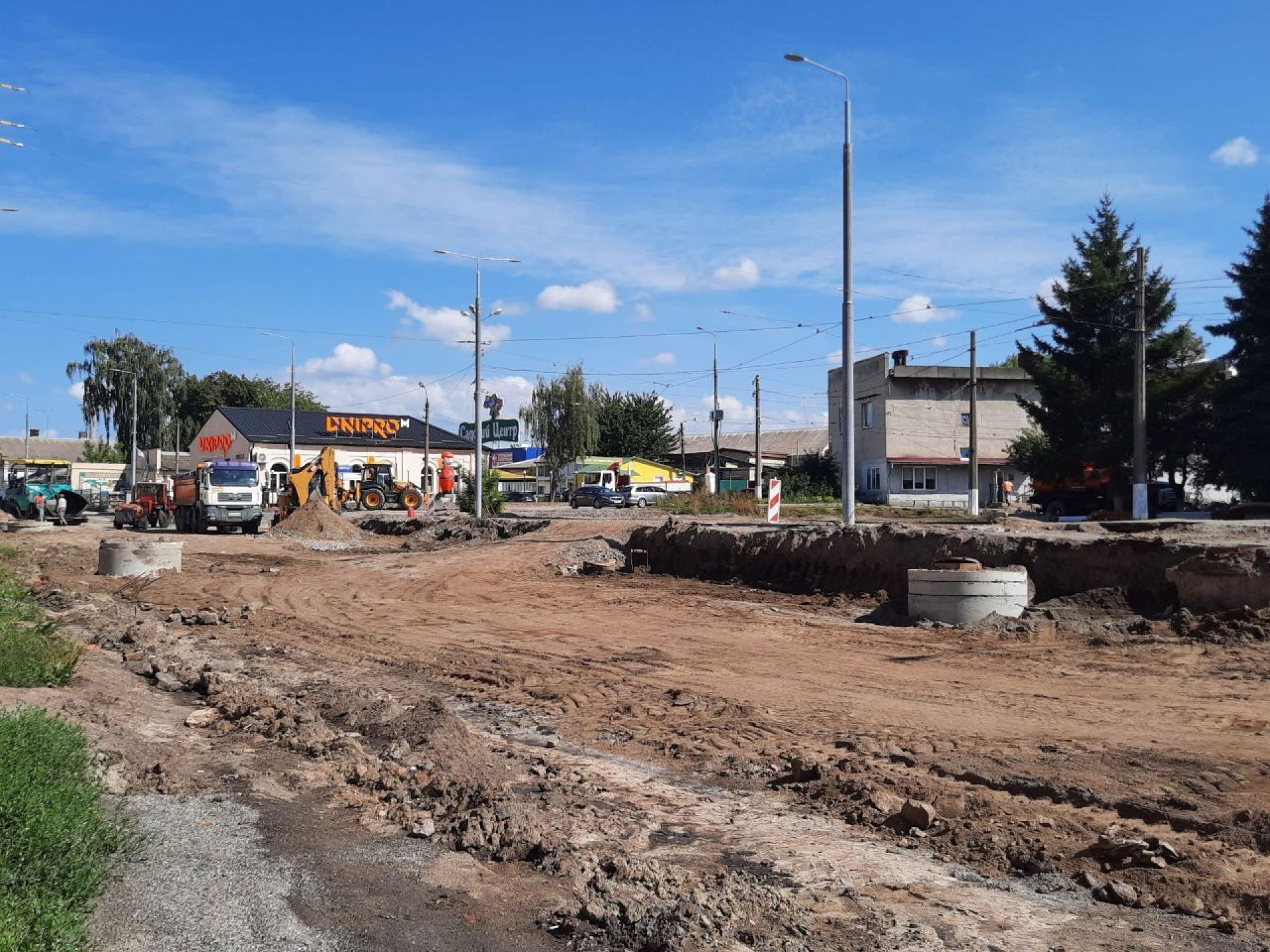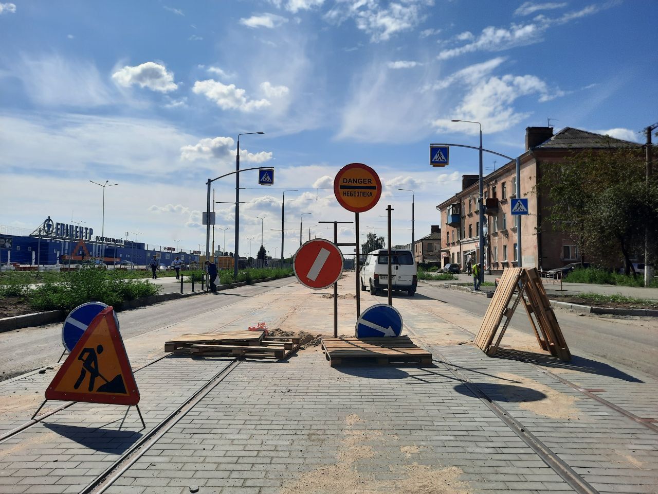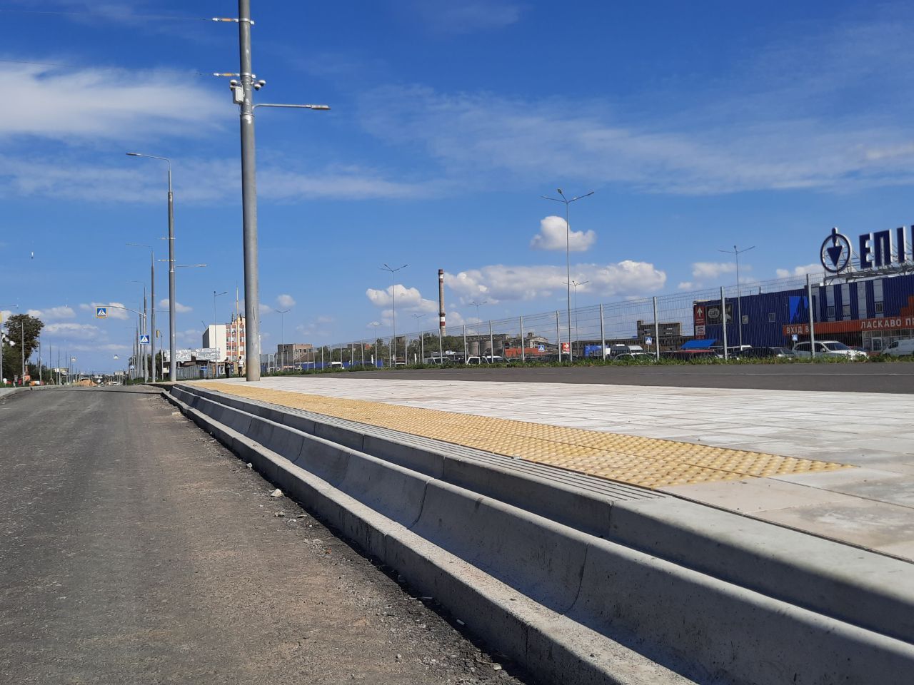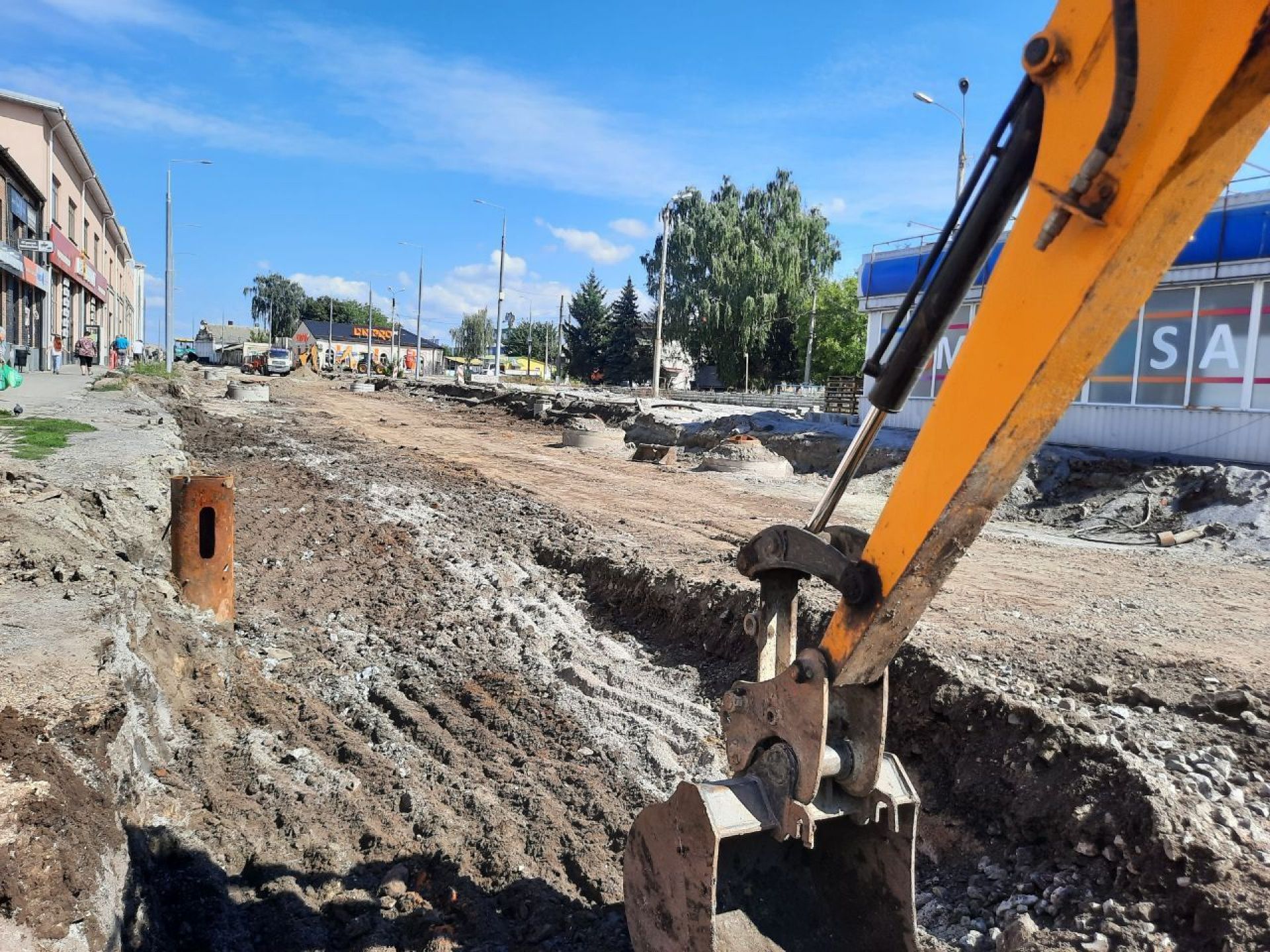 - Вздовж більшої частини вулиці вже прокладені колії, зроблене дорожнє покриття з тротуарами. Основні роботи наразі ведуться на ділянці, де після завершення всіх робіт буде кінцева зупинка трамваїв.