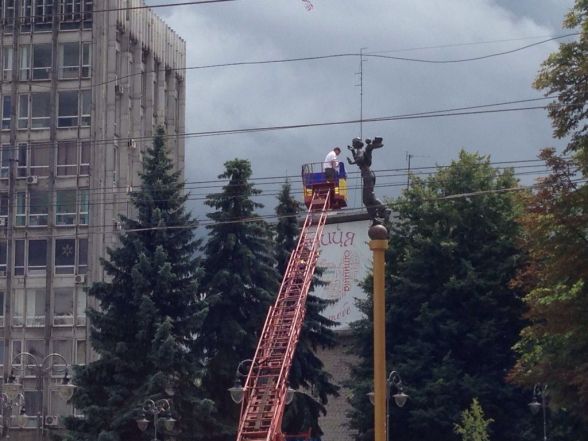 Сьогодні, 27 червня, на Майдані Незалежності вінничани одягнули пам’ятник у вишиванку. Люди у вишиванках зібрались на площі та милувались тим, як гарно виглядає пам’ятник у національному одязі України.