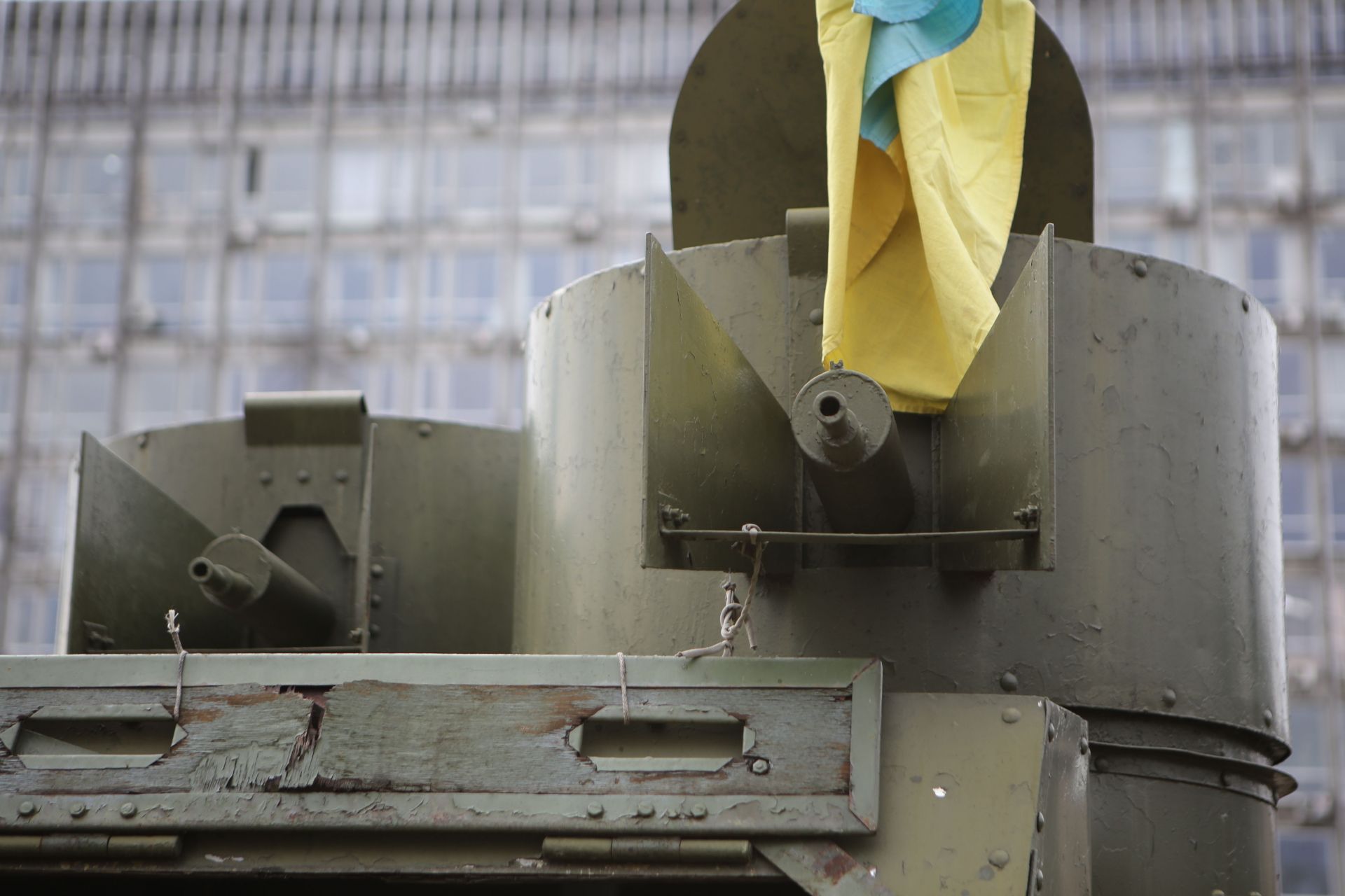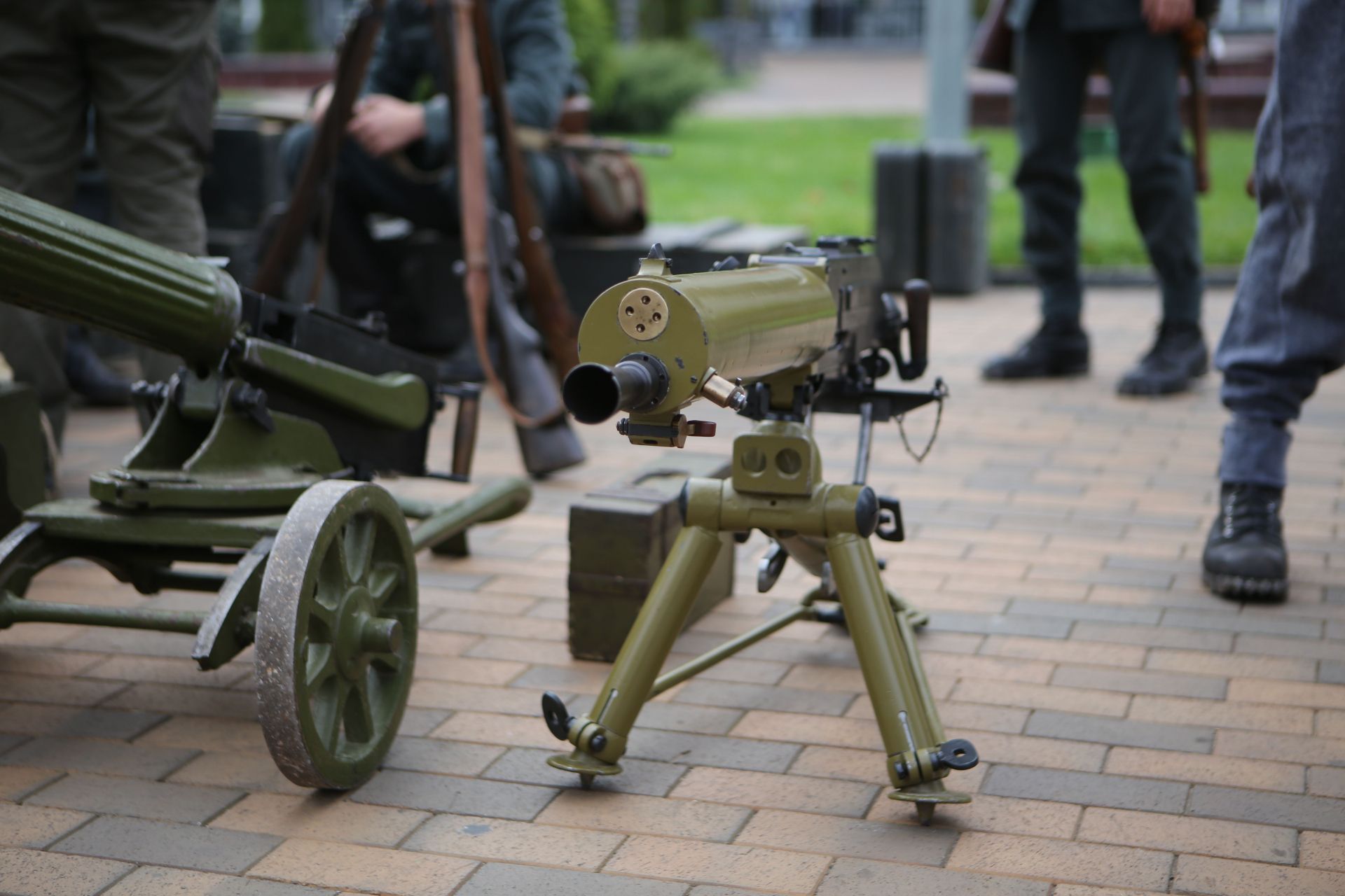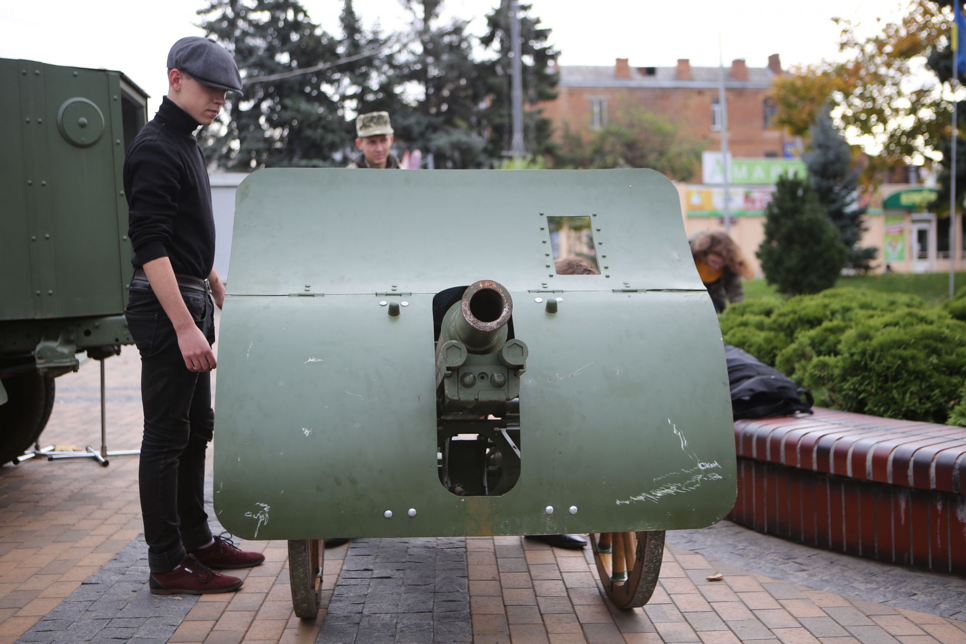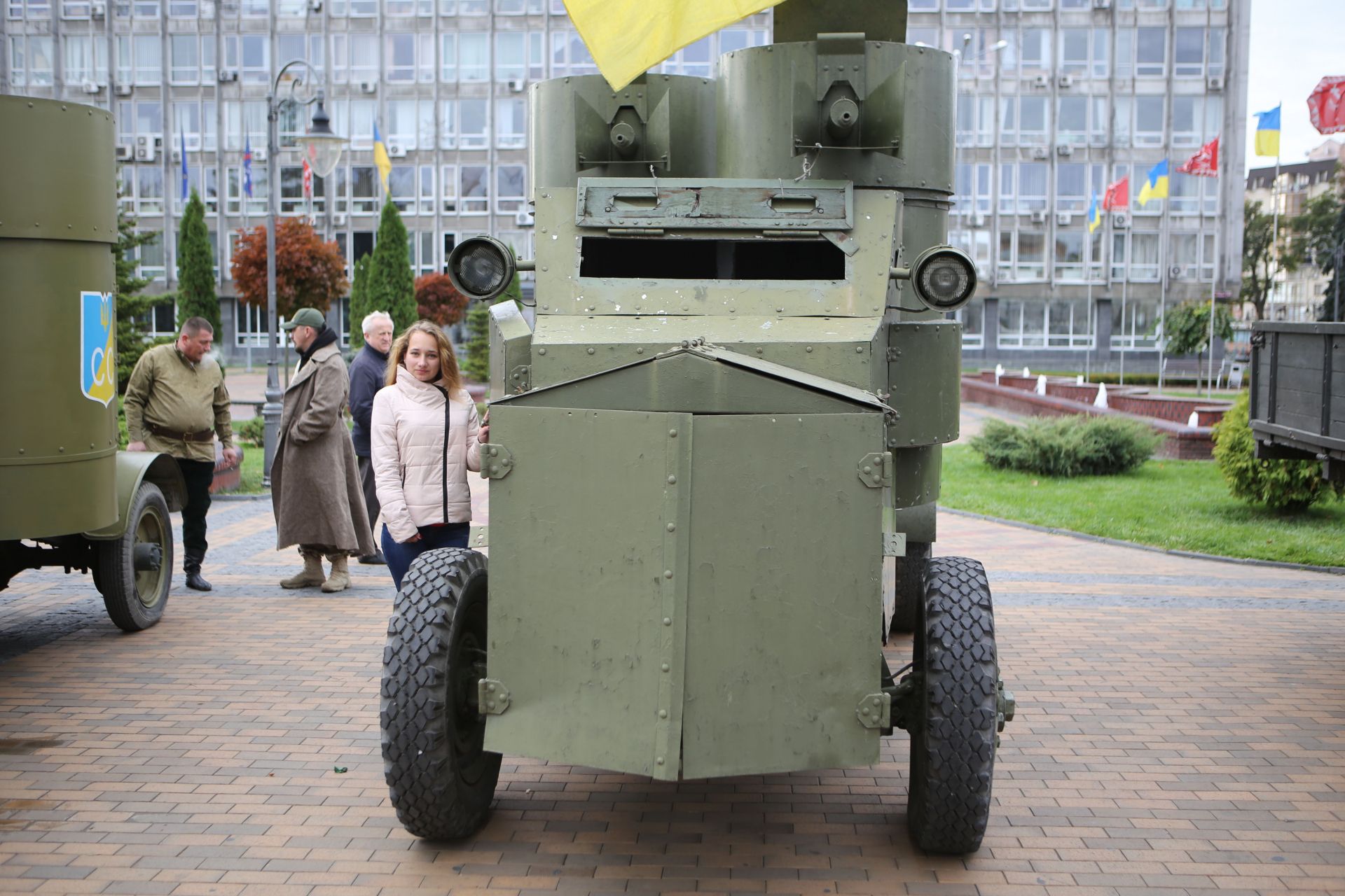 - На майдані Незалежності, поблизу міськради, виставили старовинні панцерники, кулемети та рушниці, якими користувалися 100 років тому.