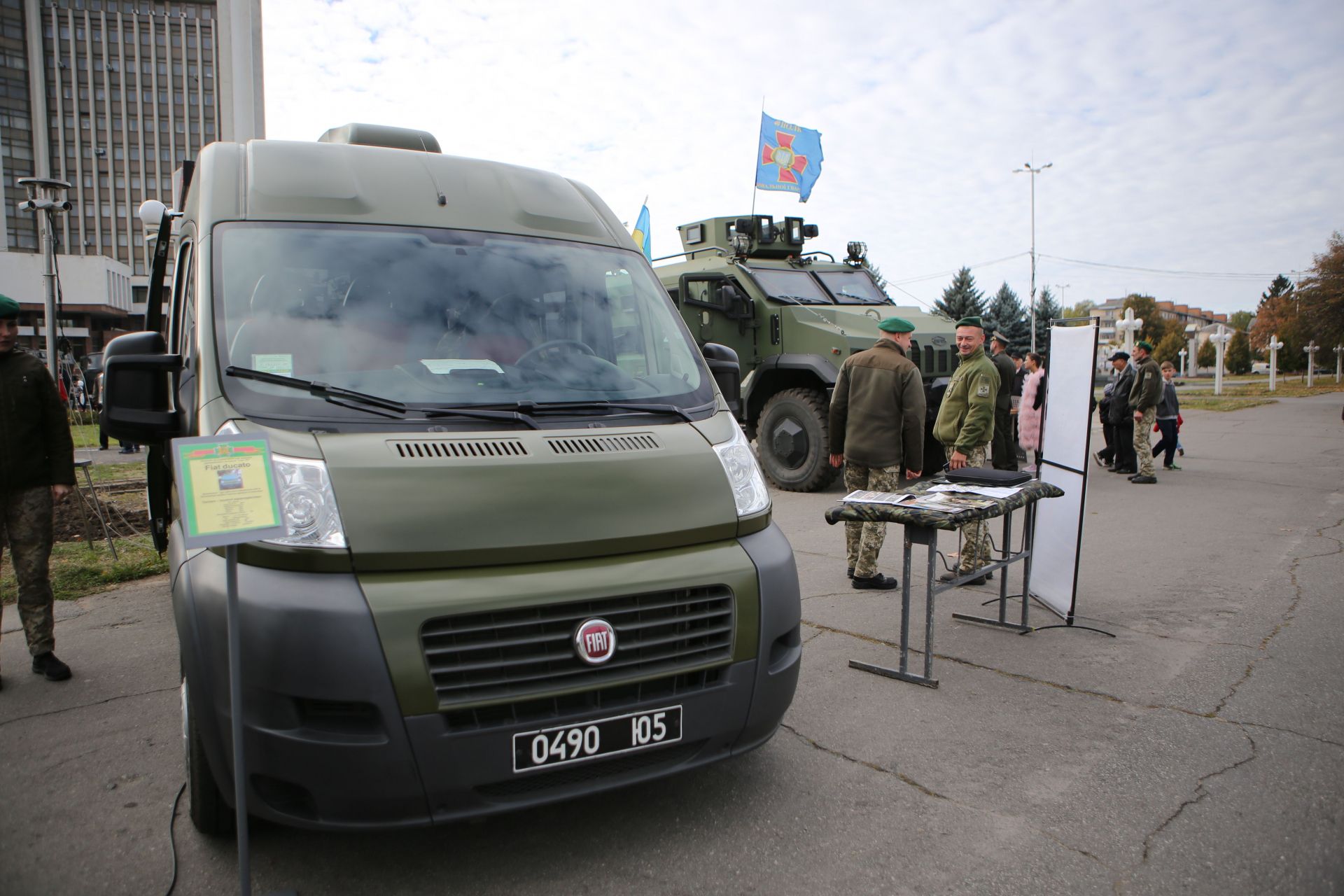 Нацгвардійці демонструють своє знаряддя, показують екіпіровку та військову техніку, яка зараз застосовується у війні на Сході України. Зокрема, бронемашина «Варта», вантажівка-операційна, броньовані KRAZ та вантажівки МАЗи для перевезення військових.