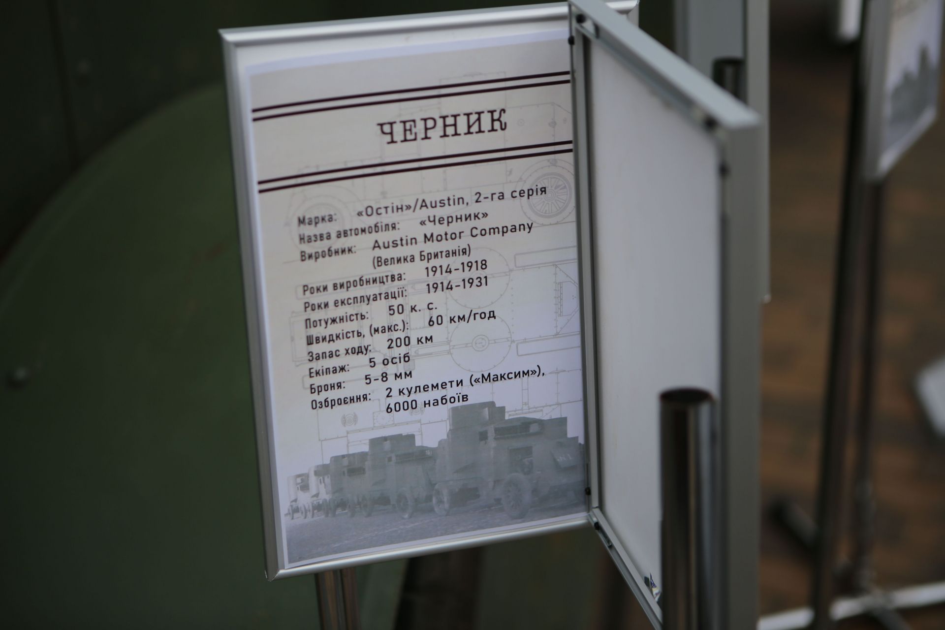 — Наш панцерник «Петлюра», панцерник «Черник» з Кам'янець-Подільського є копіями англійських машин Остін 4-ої серії та Остін 2-ої серії. Такі бойові машини були на битвах Першої світової війни та української революції 1917-1921 років.