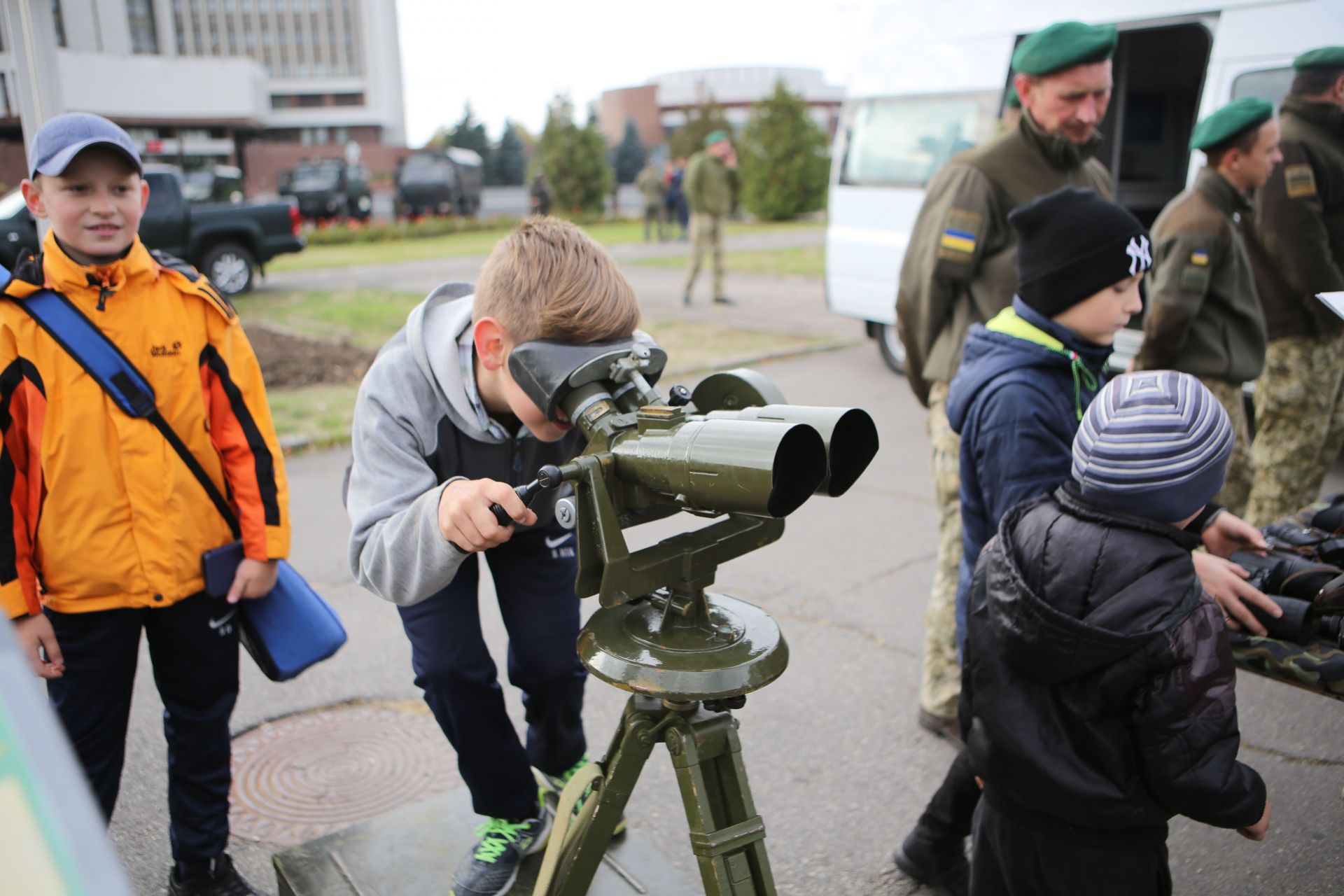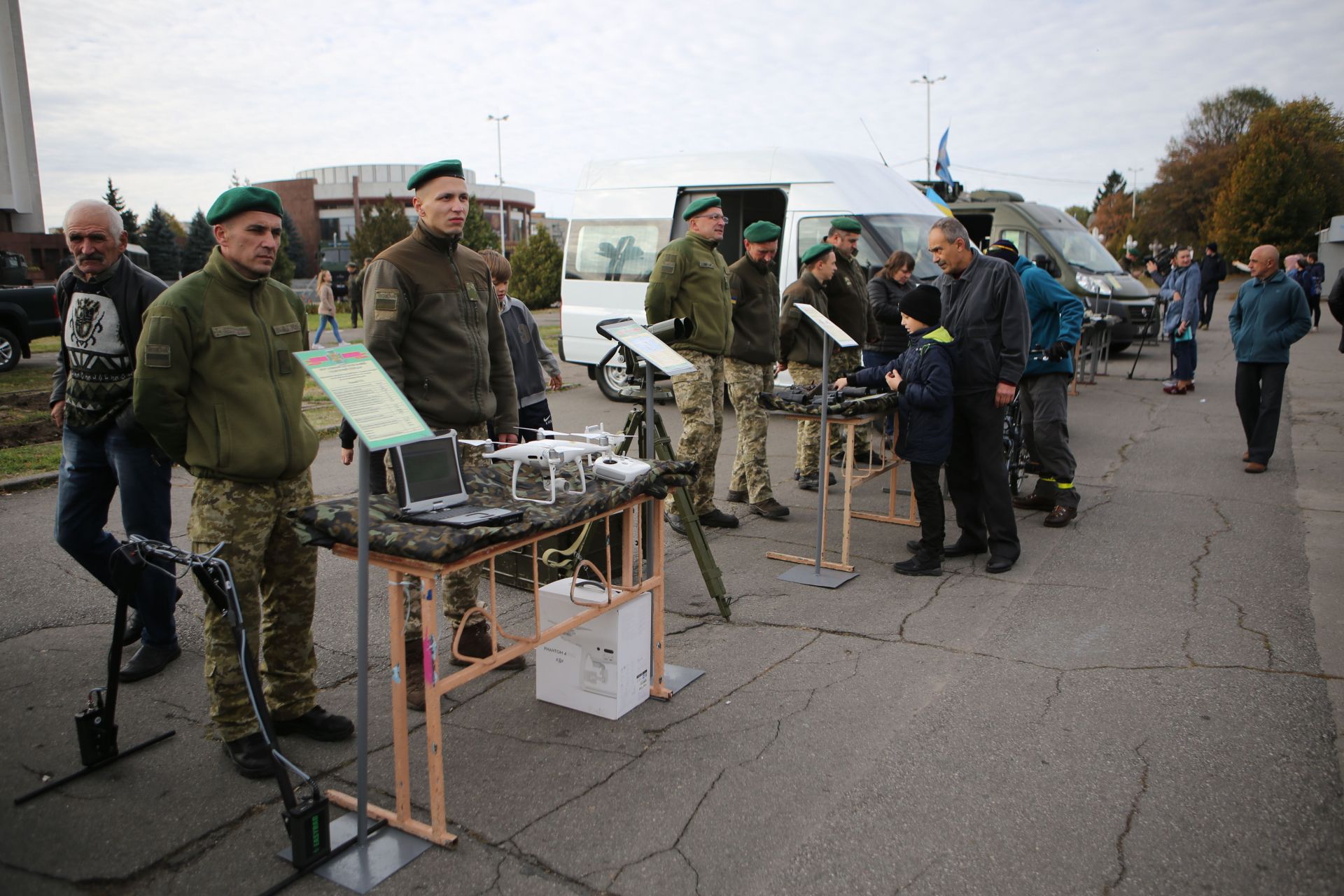Чимало знаряддя показують могилів-подільські прикордонники, які для слідкування за кордоном застосовують ще й квадрокоптер. Нацгвардійці показували свою екіпіровку та військову техніку.
