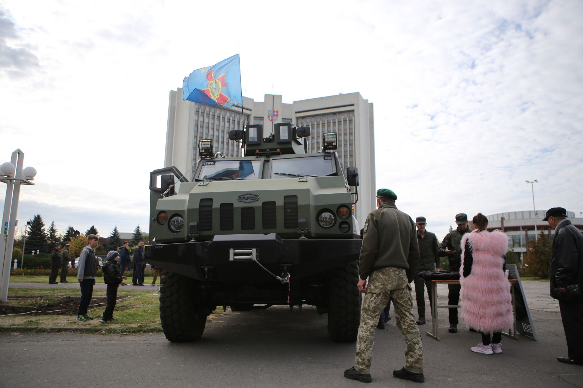 - На площі Стуса, біля Книжки, сучасне озброєння українських військових. Серед них — два потужних броньовики «Варта»