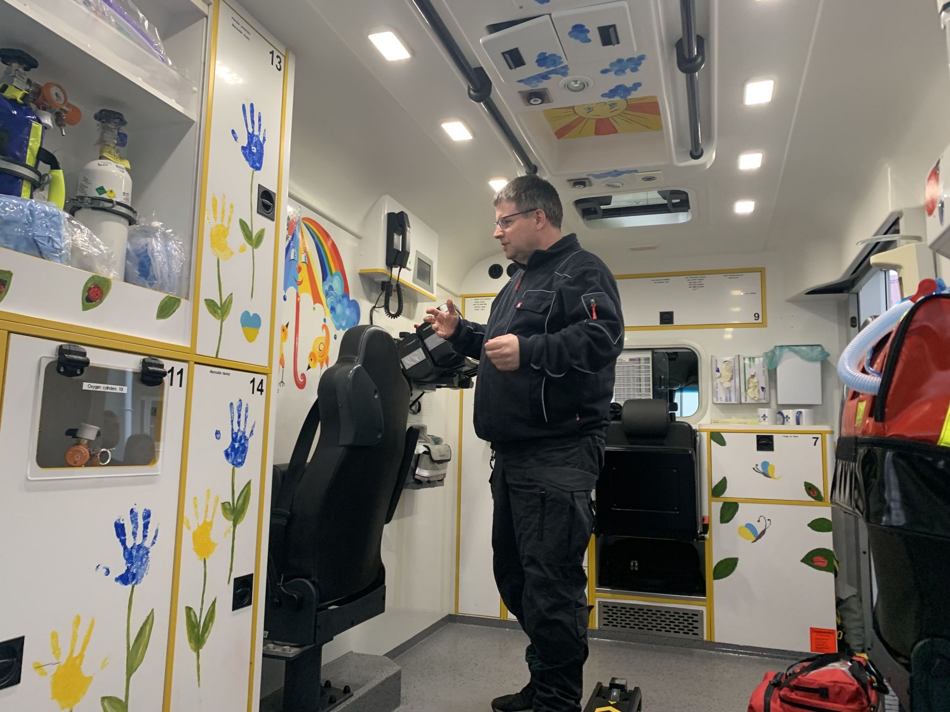 Навіщо потрібен такий автомобіль? Тому що, як каже сам Марк Фрідріх, діти — це не «маленькі дорослі». І у звичайній машині швидкої допомоги немає для них спеціального обладнання. А тут — педіатричне відділення інтенсивної терапії всередині звичайного Мерседес Спрінтера.
