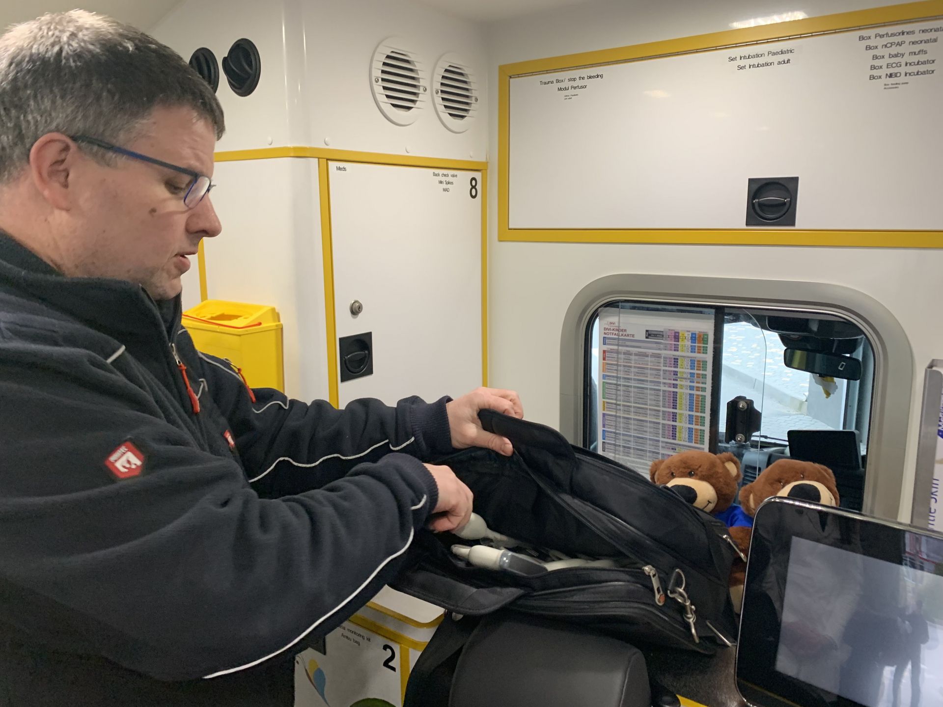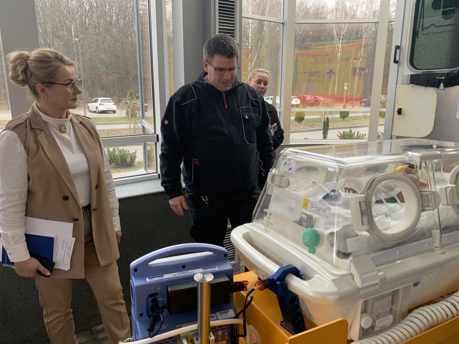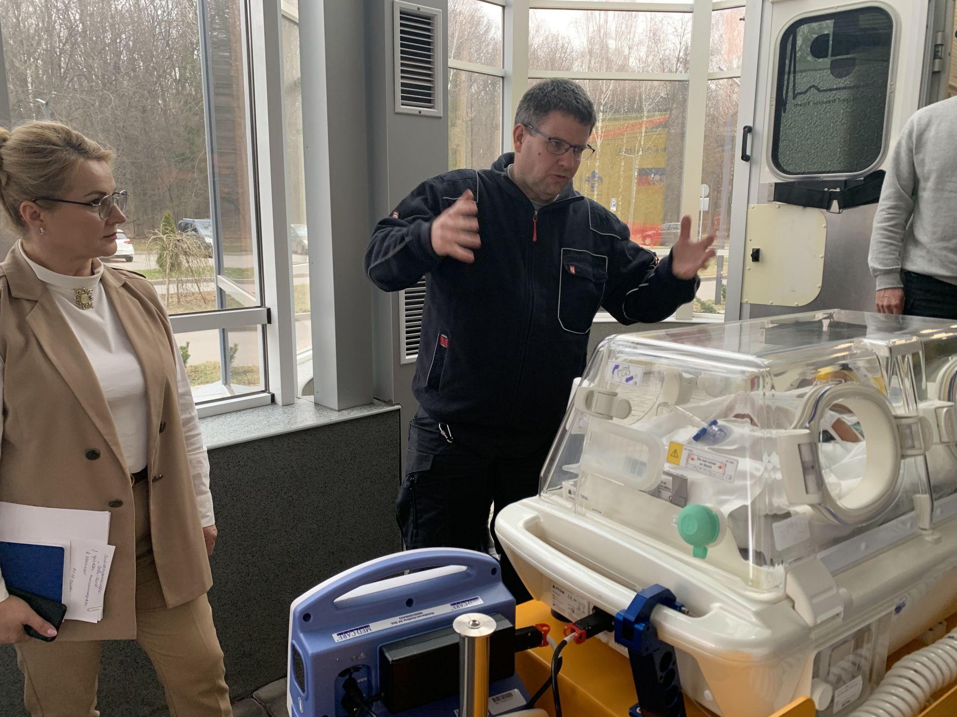 Машина максимально підведена до європейських стандартів по безпеці пацієнта. І зокрема тут є 8000 літрів кисню, апарати штучної вентиляції для новонароджених та дітей, портативні УЗД, набір для інтубації, якщо є проблема з дихальними шляхами, є ларингоскоп з камерою, зображення з якої передається на екран.
