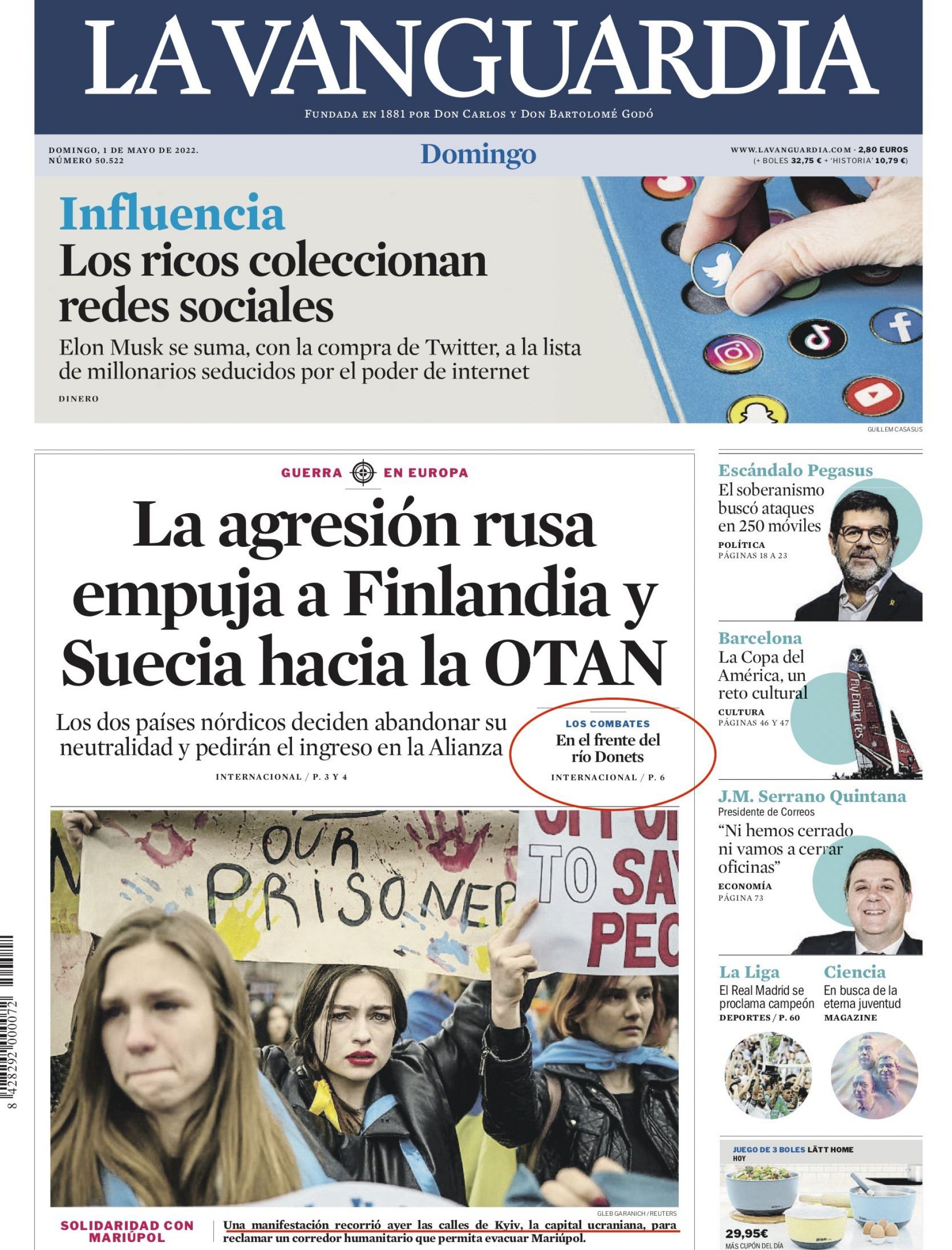 Іспанія. «La Vanguardia». Головний матеріал: «Російська агресія штовхає Фінляндію та Швецію до НАТО. Дві країни Північної Європи вирішують відмовитися від свого нейтралітету і вимагатимуть вступу до Альянсу».