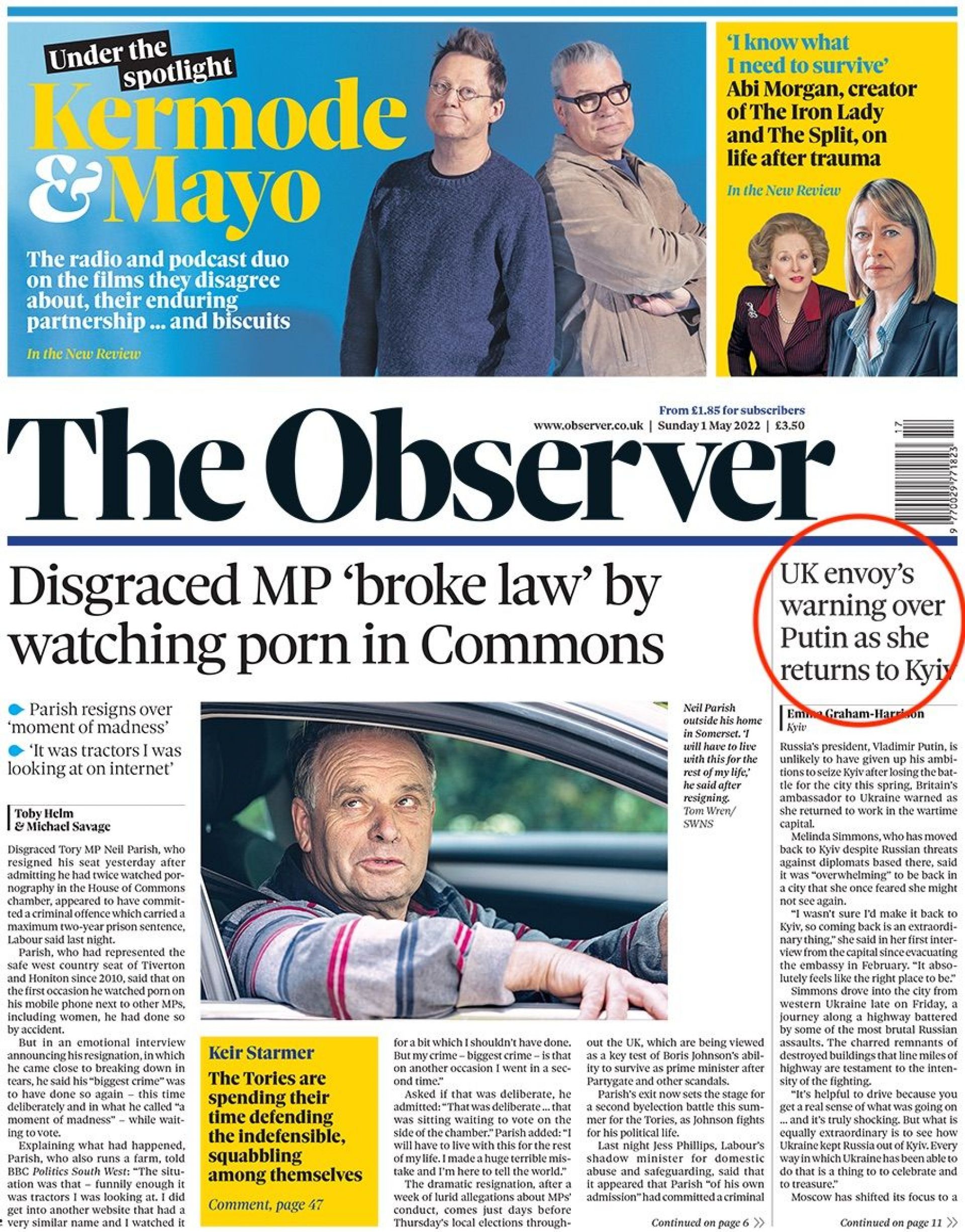The Observer вийшла з колонкою: Посли Великобританії попереджають, що Путін може повернутися до Києва. Малоймовірно, щоб російський президент відмовився від своїх амбіцій, аби захопити Київ.