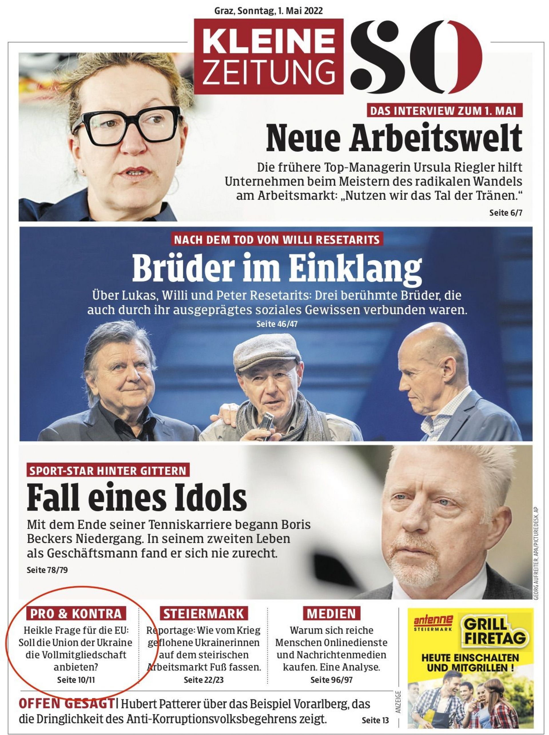 Газета: «Kleine Zeitung» — «Важке питання для ЄС: чи має Союз запропонувати Україні повне членство?»