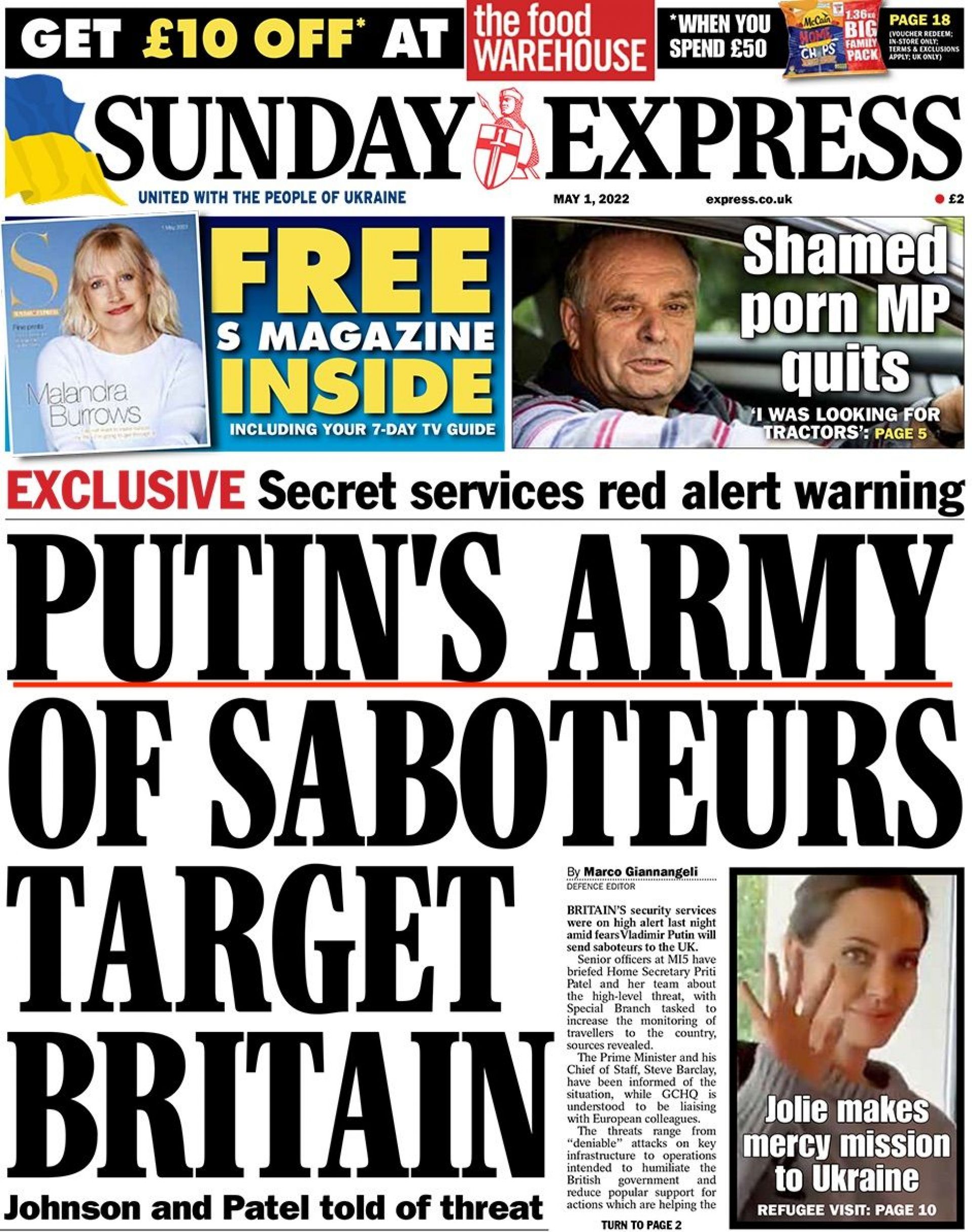 The «Sunday Express» в ексклюзивному матеріалі пише, що президент Росії Володимир Путін має «армію диверсантів», націлених на Великобританію.