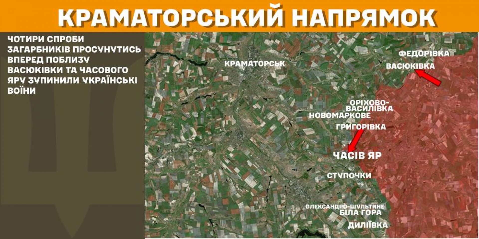 Чотири спроби загарбників просунутись вперед поблизу Васюківки та Часового Яру зупинили українські воїни на Краматорському напрямку.