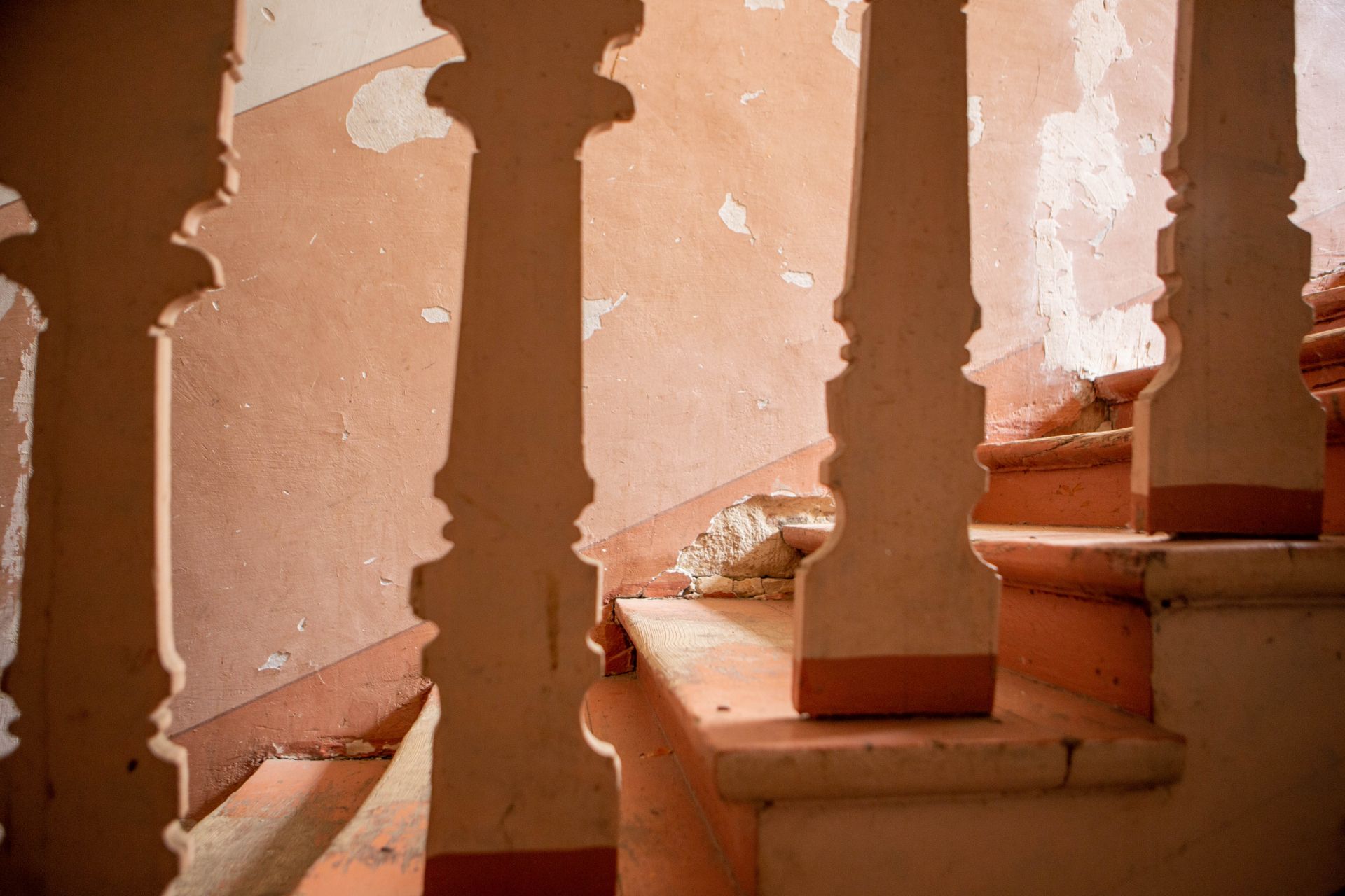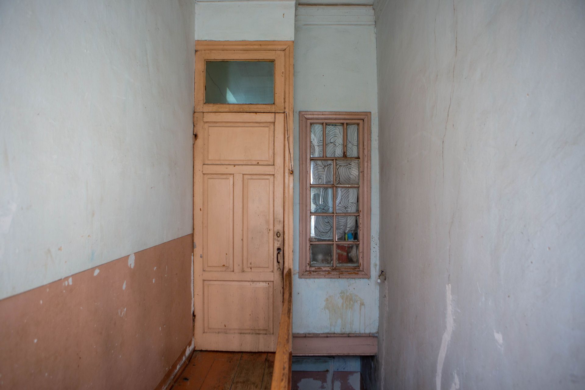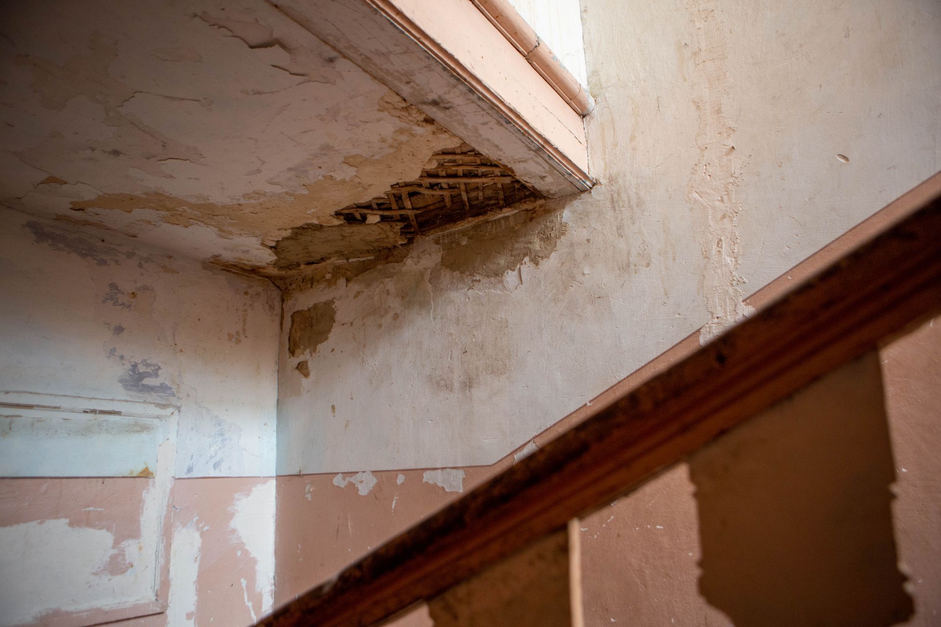 А стан одного з під’їздів будинку взагалі не сходиться з образом палацу: фарба та штукатурка на стінах полущилася, дерев’яні сходи та поручні місцями потріскалися, а в стелі видніються діри.