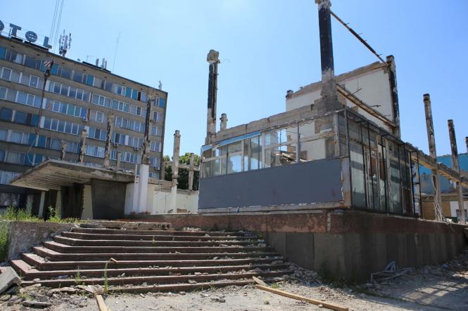 Робітники зняли покрівлю, розібрали стіни дискоклубу. Від споруди залишився тільки каркас. Також демонтували вхід-хол до готелю.