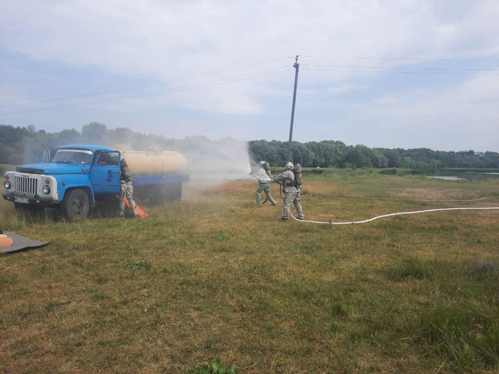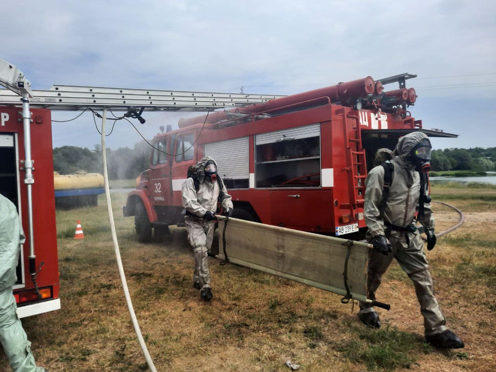 - Навчання проходили у селищі Чернівці Вінницької області. Працівники екстрених служб відпрацьовували дії на випадок аварійних ситуацій, що можуть виникнути через небезпечні хімічні речовини.