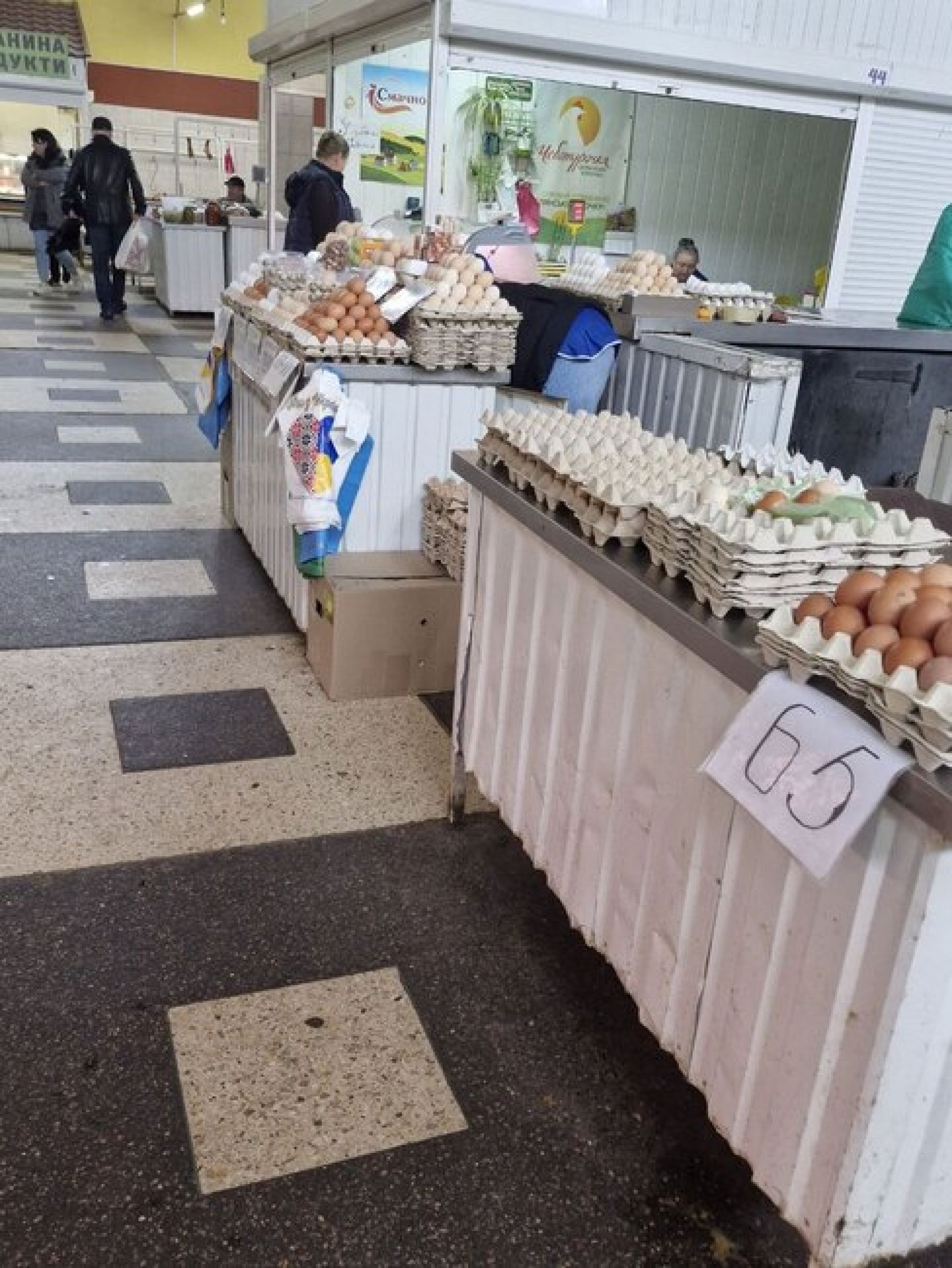 Поблизу ринку є оптові магазини та склади, де також великий вибір курячих яєць. Тут десяток можна придбати за 75 гривень, а якщо взяти відразу п'ять десятків — ціна падає до 71,50 гривні.