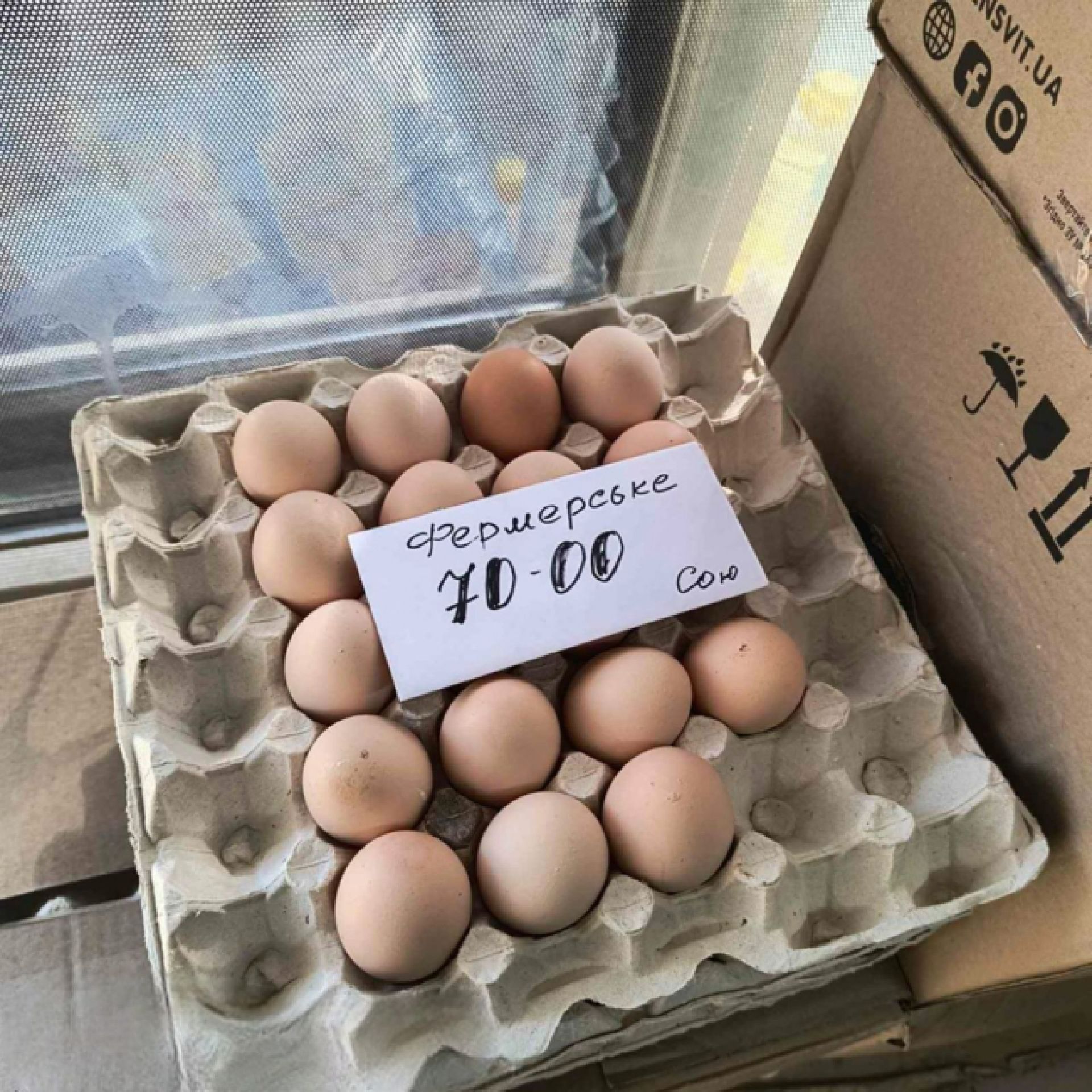 — У нас переважно яйця від «Ясенсвіт». Є різні за розміром, від цього і залежить ціна. Також продаємо продукцію від фермерів із Тульчина, Теплика та Гайсина, — розповідає продавчиня Катерина.