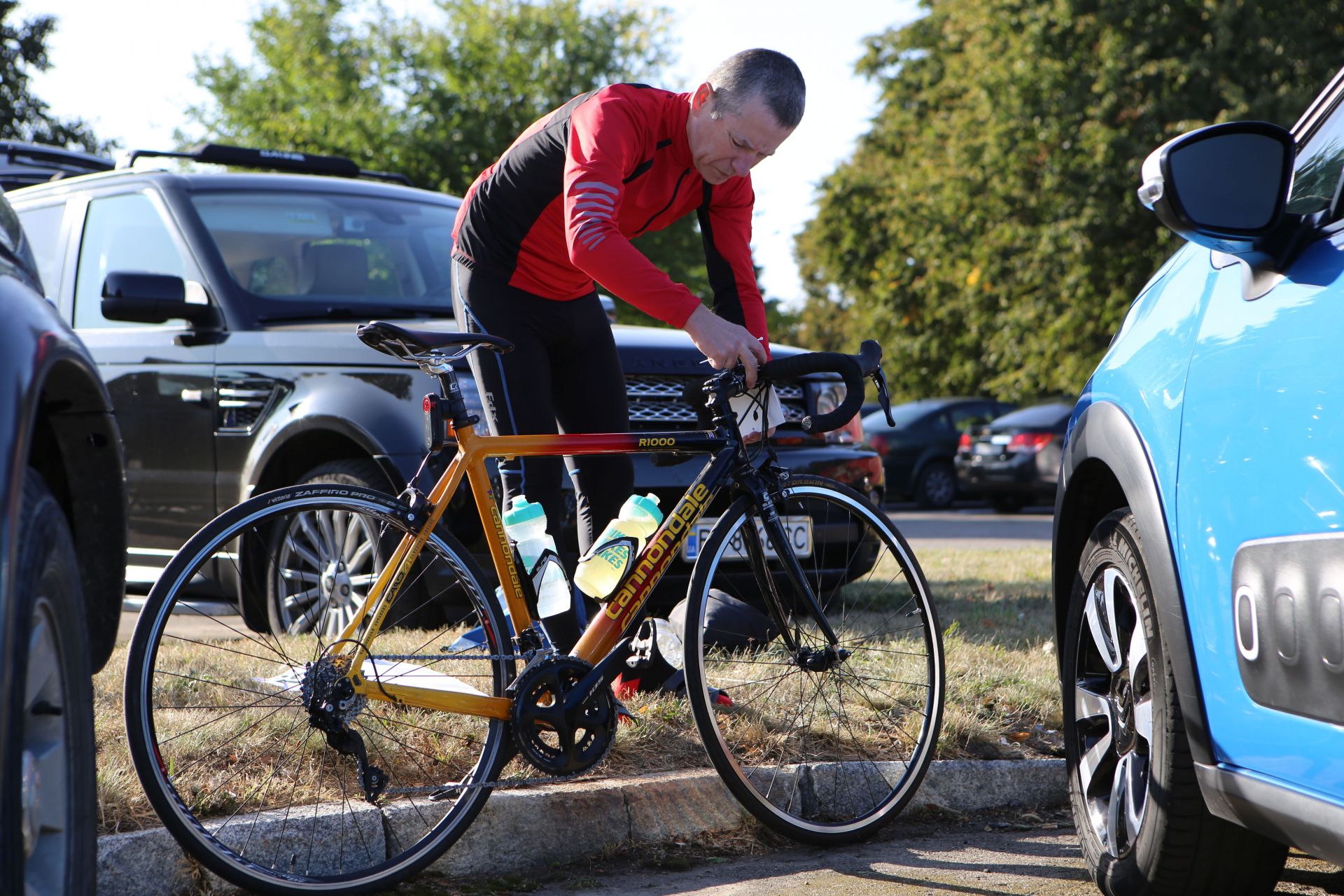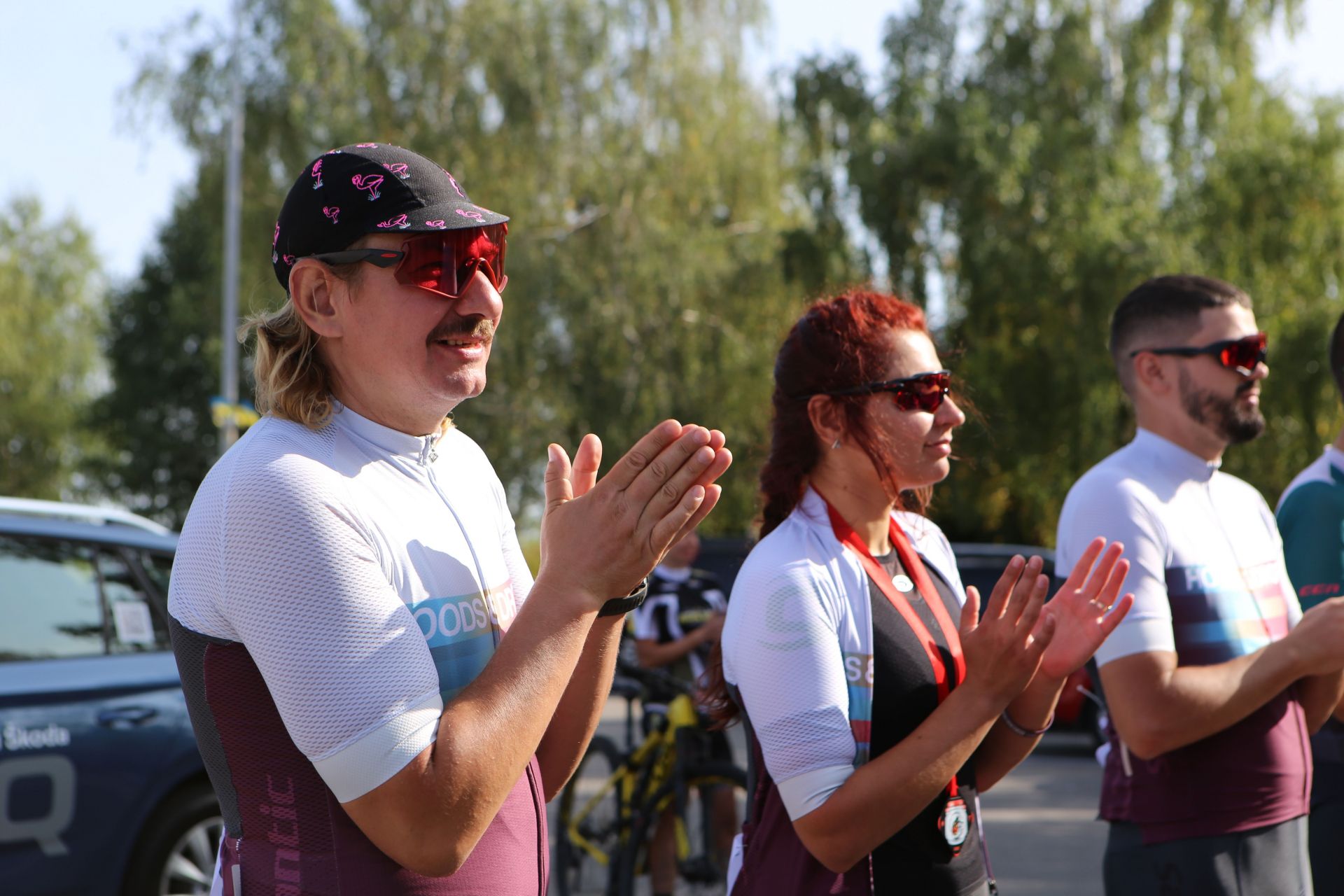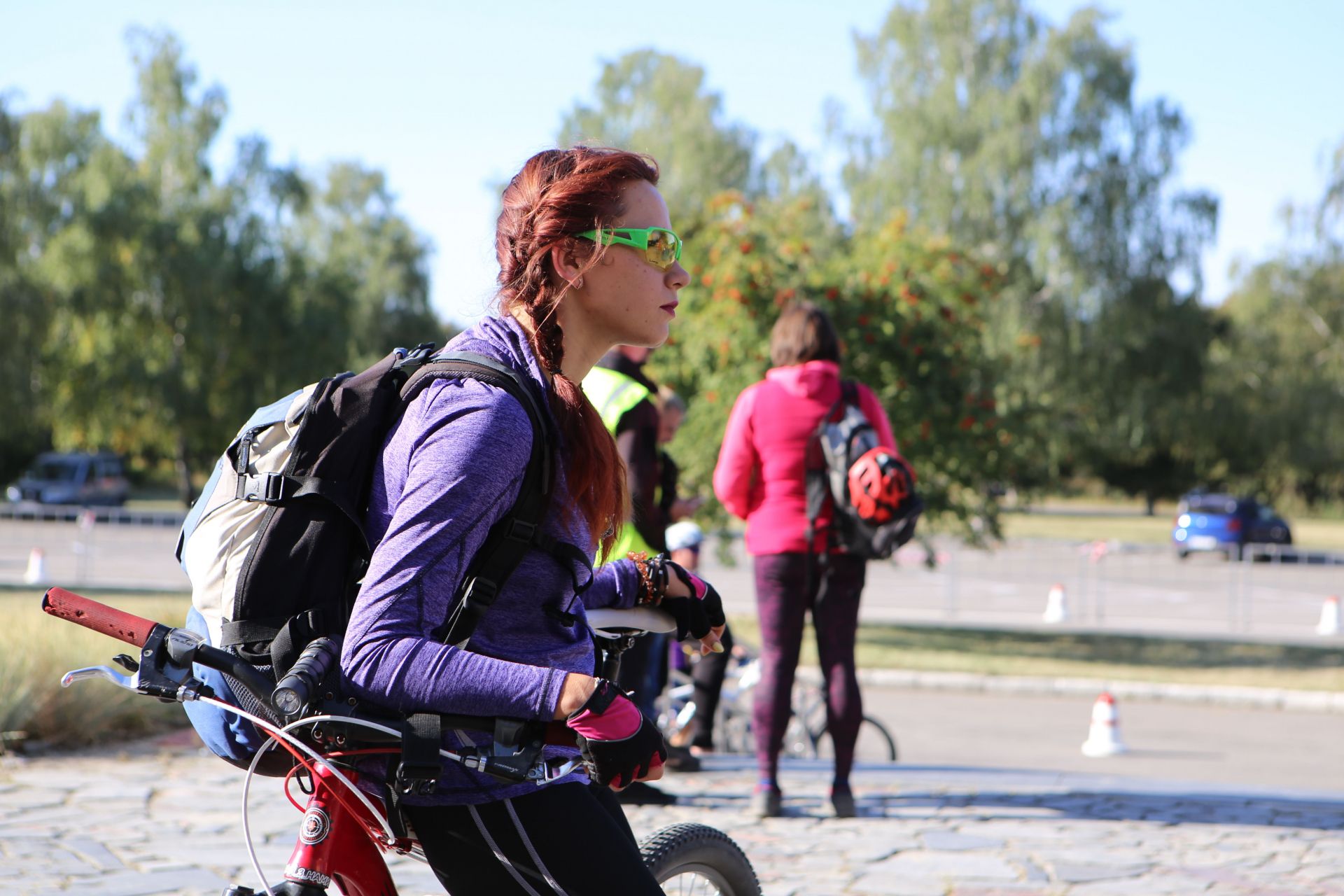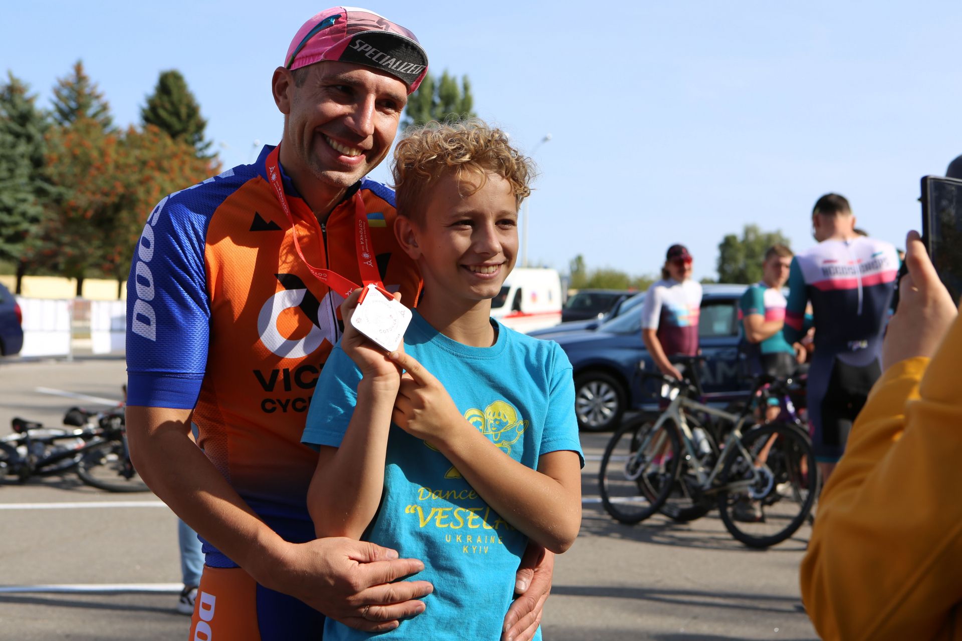 На автопарковці людей хоч і менше, ніж біля намету реєстрації, але життя тут вирує. Десятки учасників збирають свої велосипеди, клеять номерки на одяг, щось активно обговорюють, або просто бавляться зі своїми дітьми, яких, до слова, на заході було з десяток.
