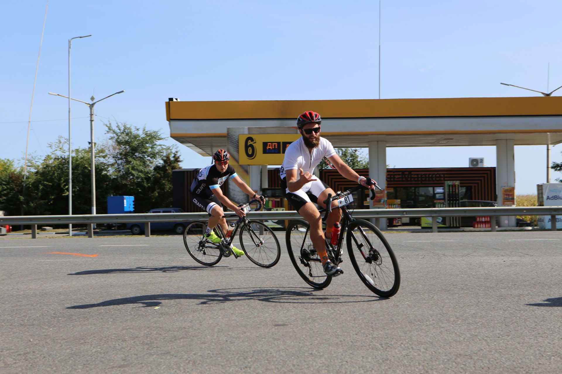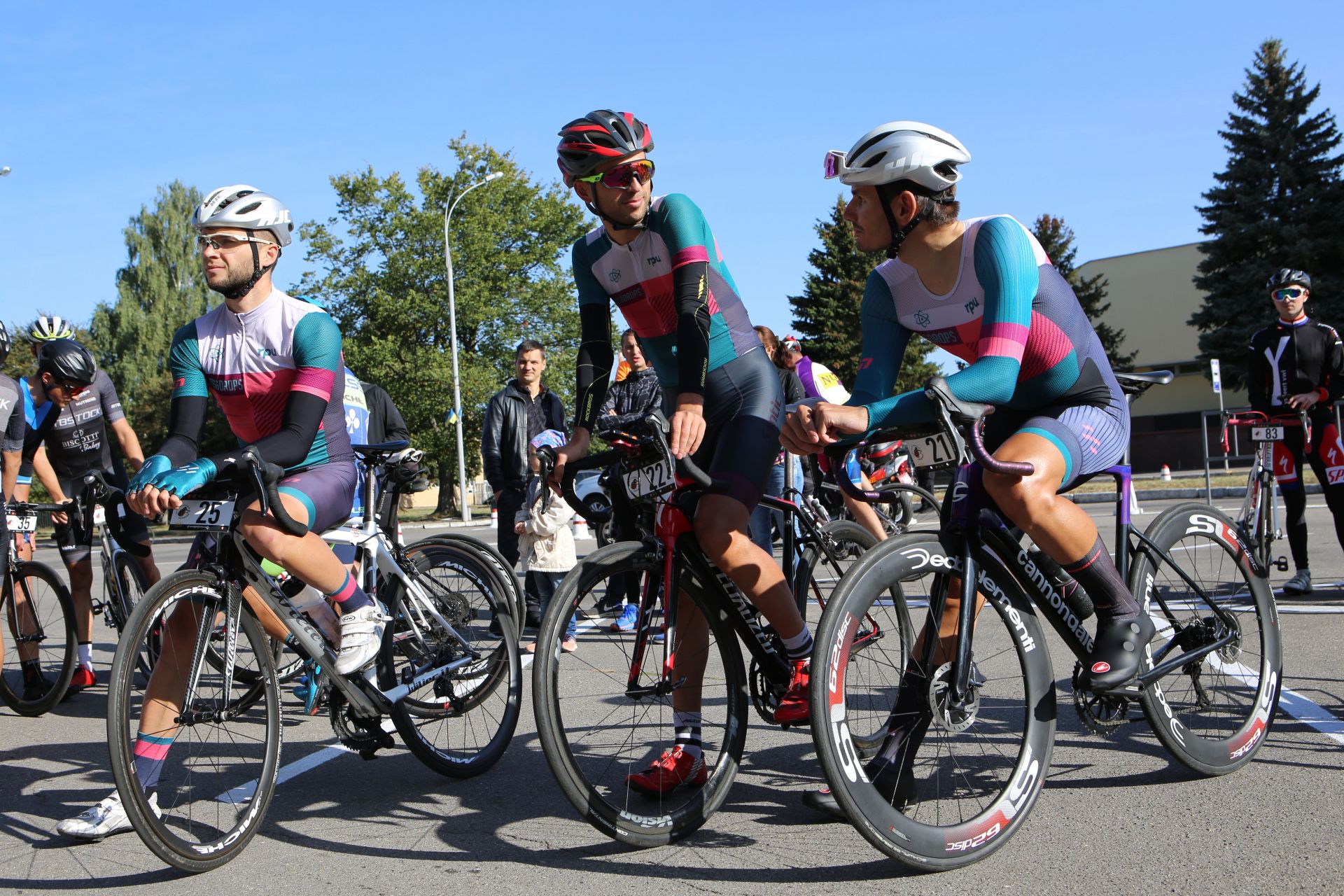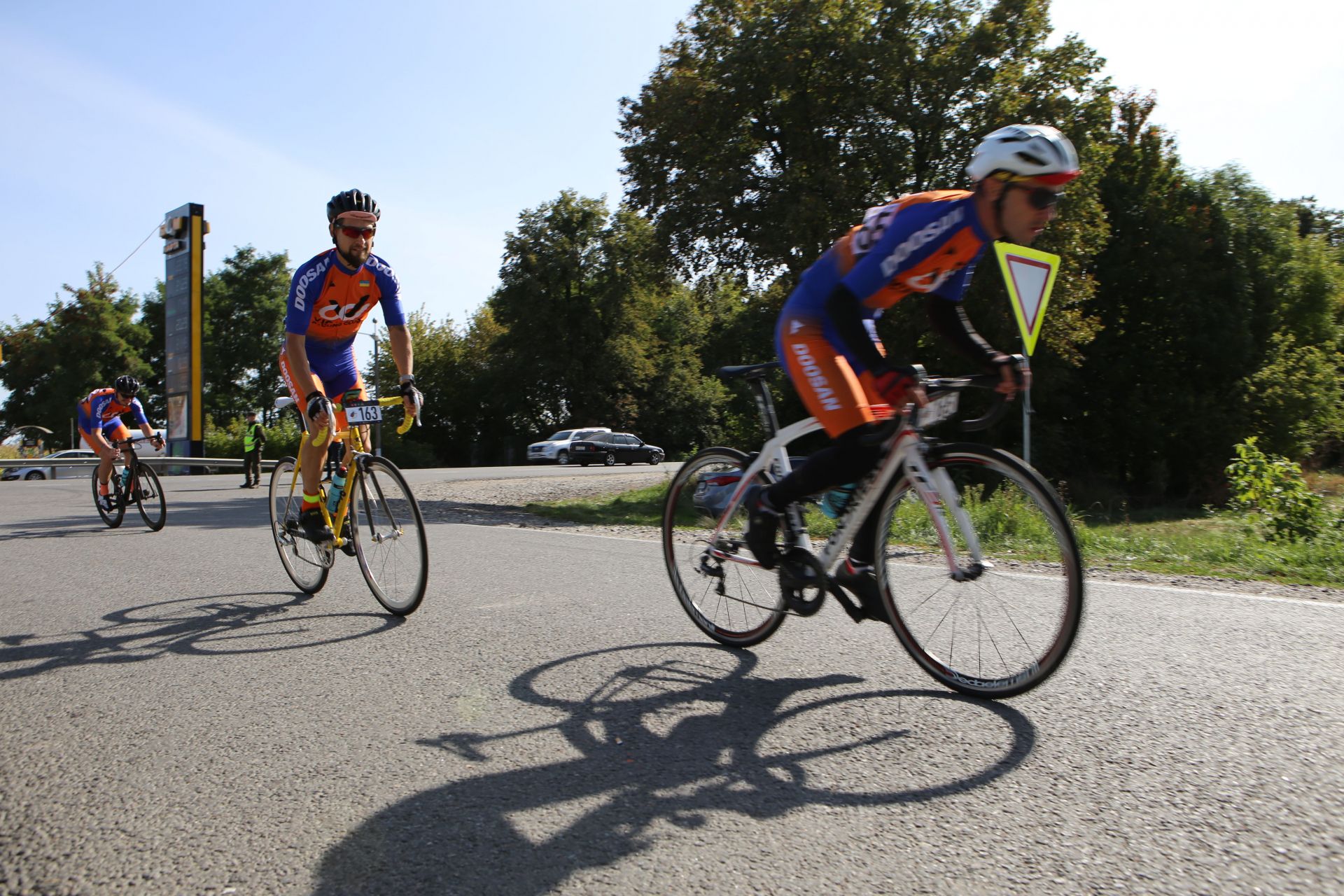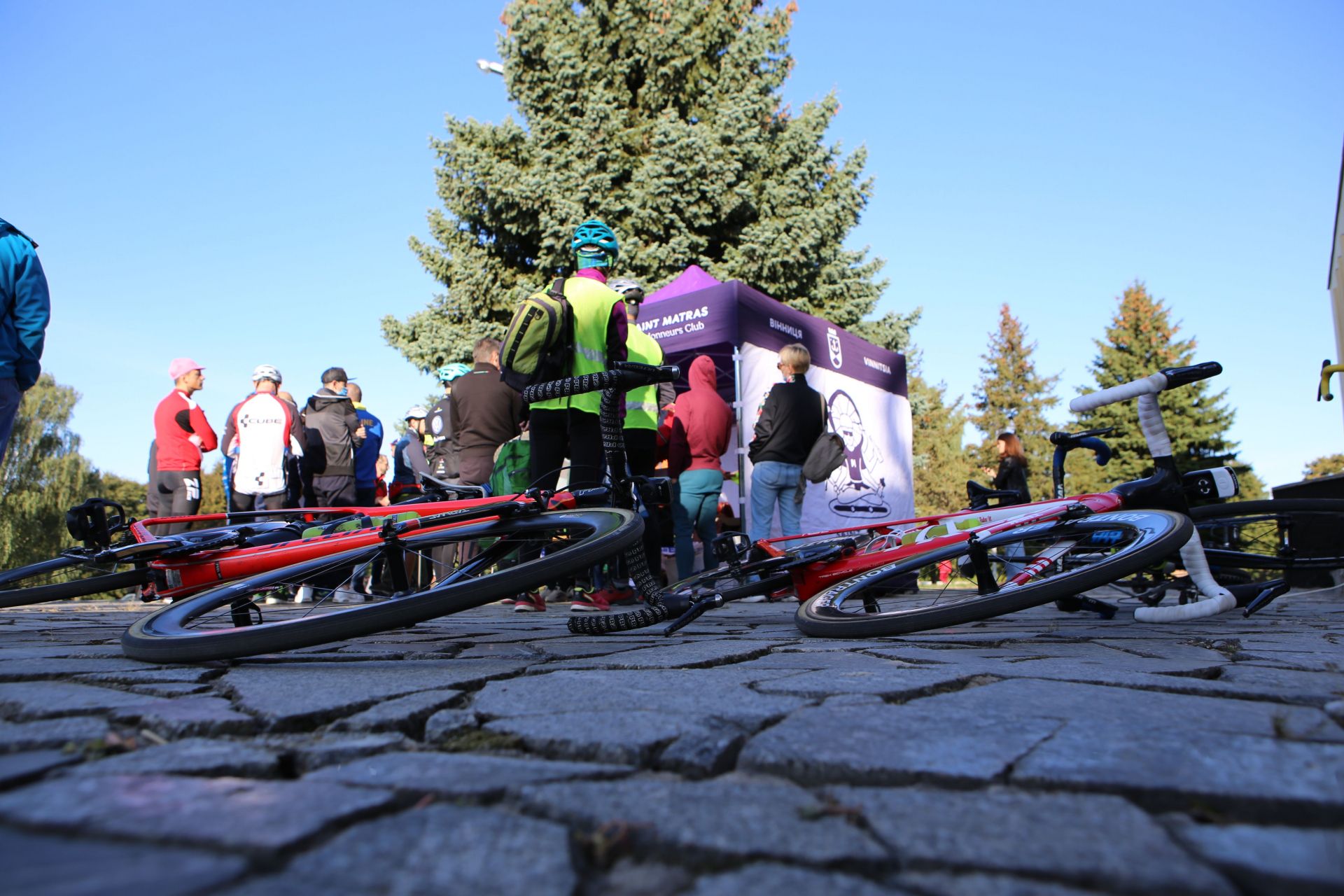 — Спочатку стартували «шосери», потім вже МТБшники, — говорить Юрій, проводжаючи поглядом чергову колону велосипедистів. — Якщо б першими пішли МТБшники, то «шосери» могли би їх наздогнати. Вони би почали плутатися між собою, а це небезпечна і нікому не потрібна річ. Тому у них своя категорія.