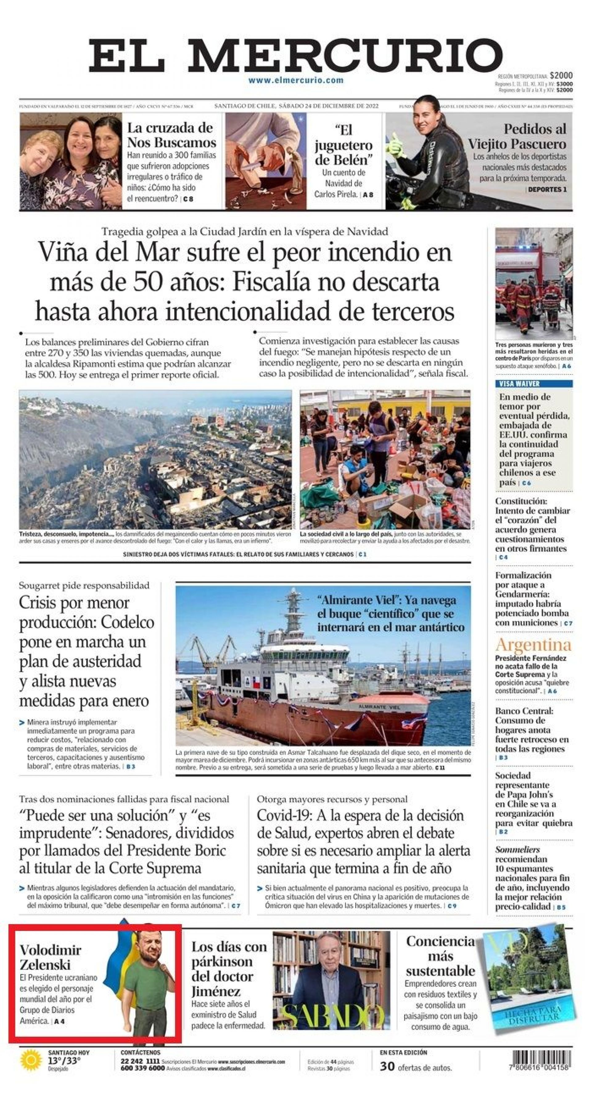 - Президент України Володимир Зеленський був обраний людиною року світу за версією Group of American Newspapers.
