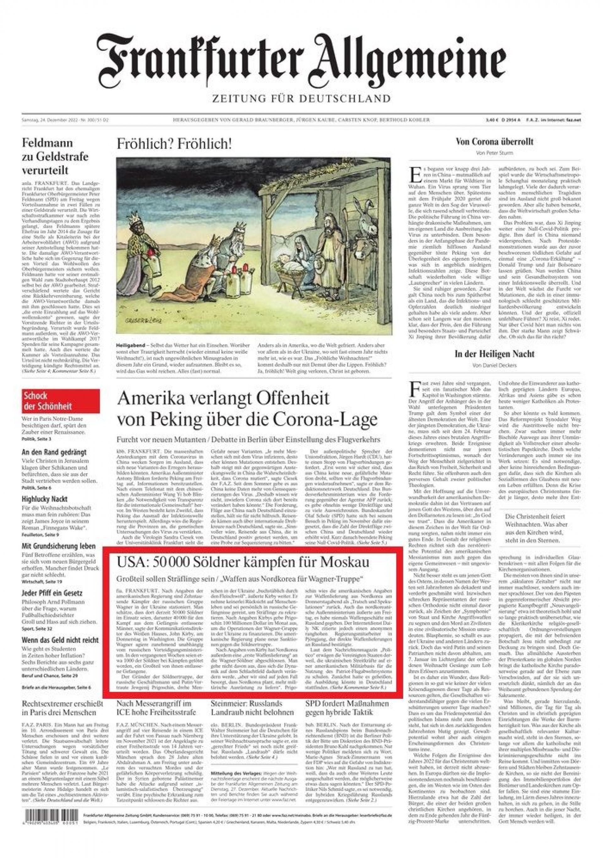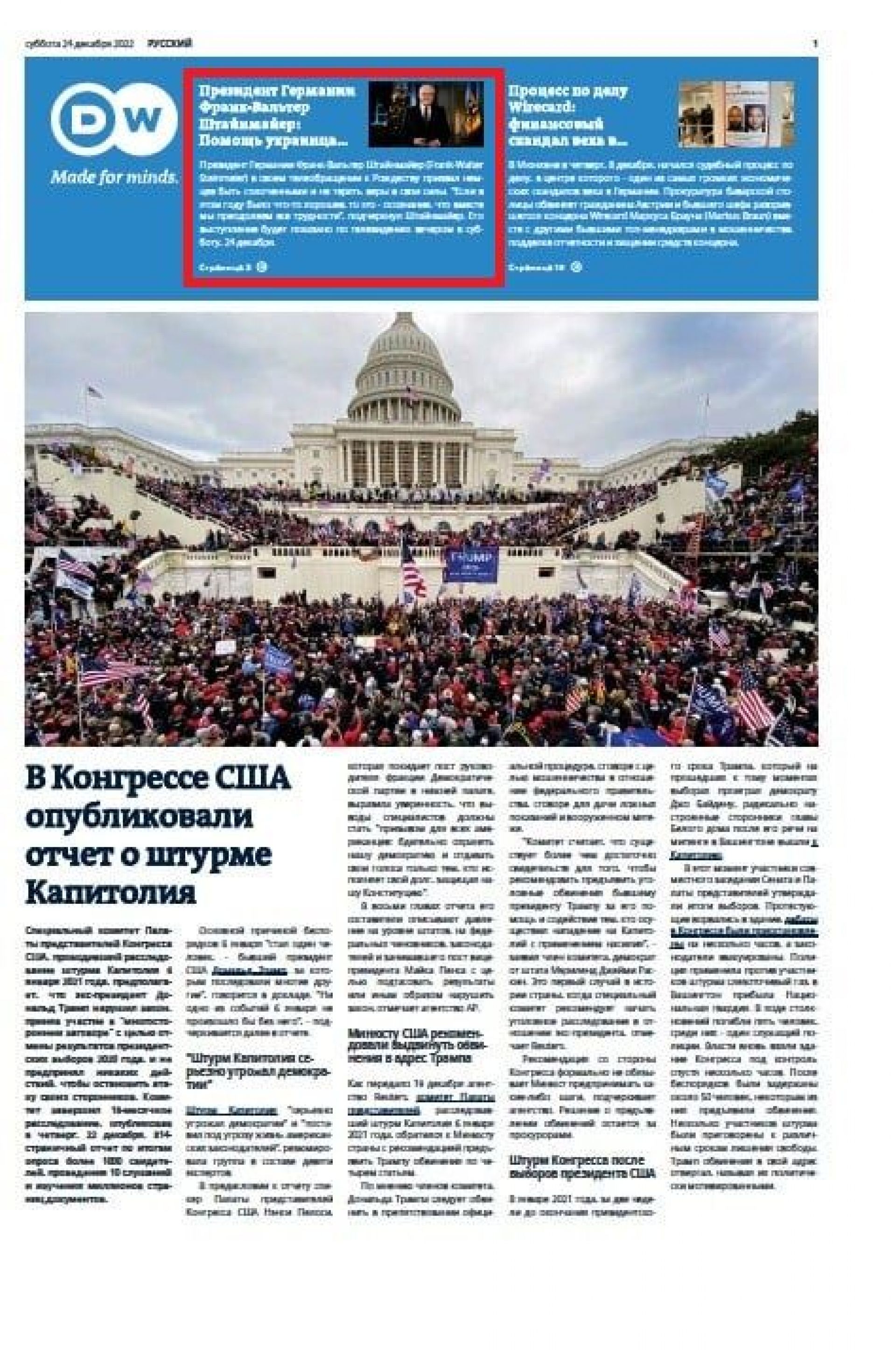 Федеральний президент Франк-Вальтер Штайнмаєр оприлюднив свою різдвяну промову не припиняти солідарності з Україною. «Поки мир не настане, це питання гуманності, щоб ми підтримували тих, хто зазнає нападів, погроз і пригноблень», — сказав федеральний президент у своїй попередньо записаній промові, яка транслюватиметься ввечері на Різдво.
