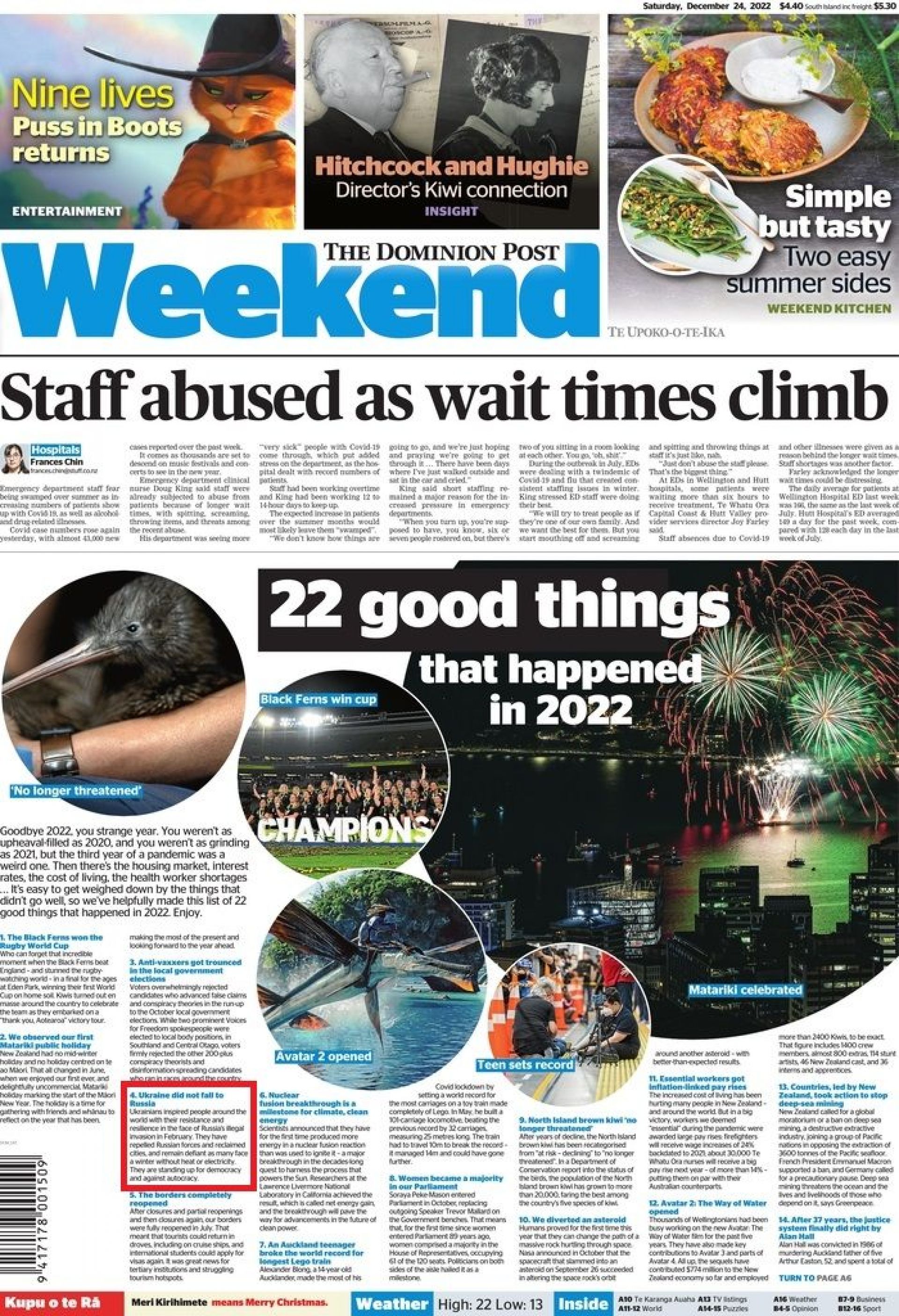 «The Dominion Post» «22 гарних новини 2022 року»: 4. Росії не вдалося підкорити Україну