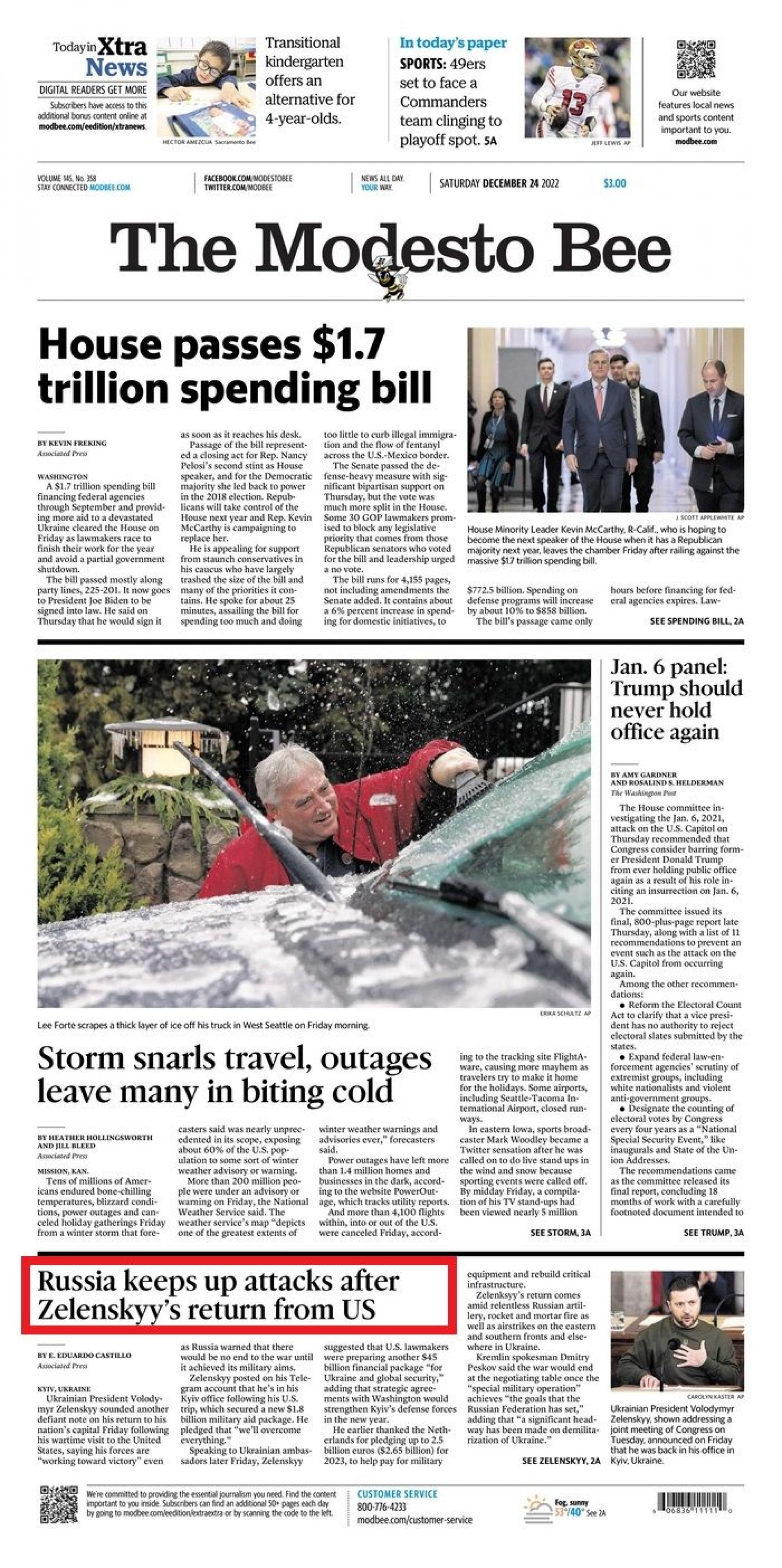 «The Modesto Bee» – «Росія продовжує напади після повернення Зеленського зі США»