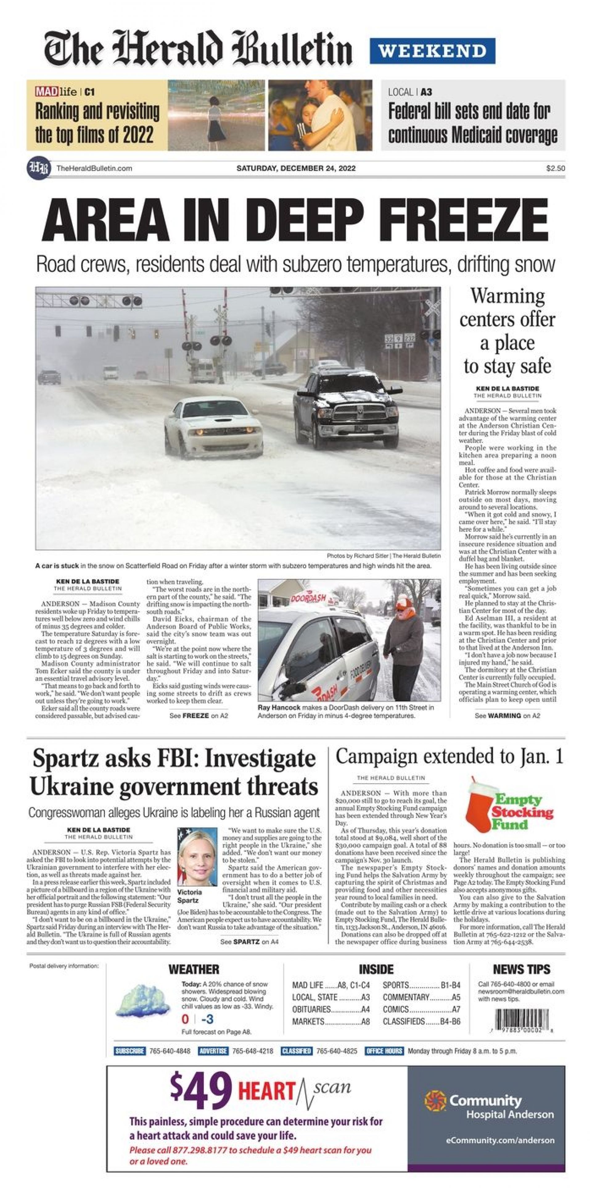 «Я не хочу бути на рекламному щиті в Україні», — сказала Спартц у п’ятницю в інтерв’ю The Herald Bulletin. «В Україні повно російських агентів, і вони не хочуть, щоб ми ставили під сумнів їхню відповідальність. «Ми хочемо переконатися, що американські гроші та постачання надходять до потрібних людей в Україні», – додала вона. «Ми не хочемо, щоб наші гроші вкрали».