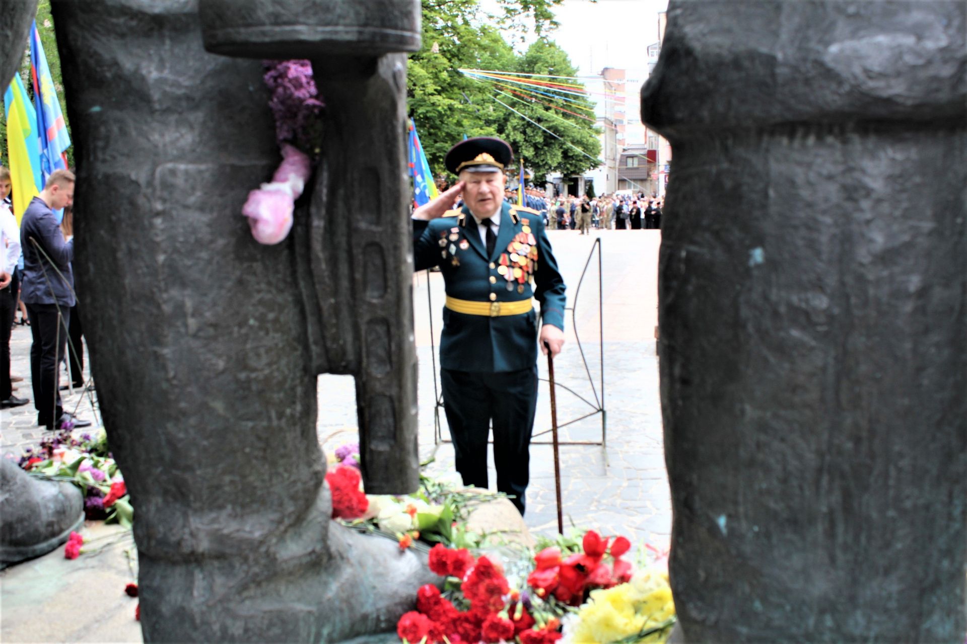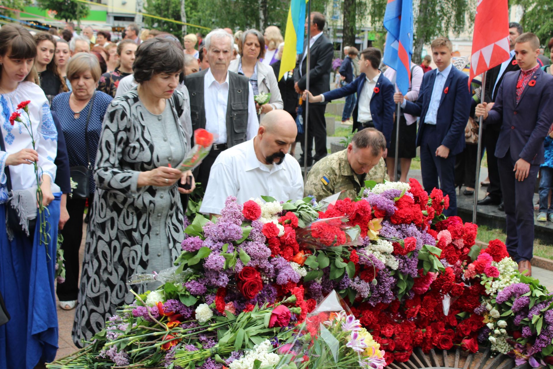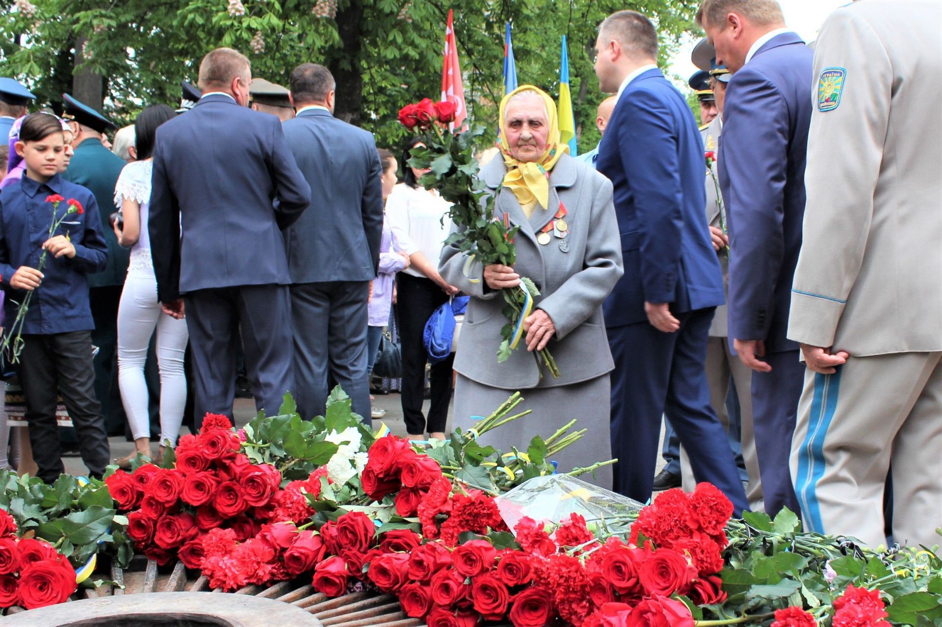Близько 11-ої години розпочалися урочисті заходи. Спочатку квіти понесли до пам’ятного знаку загиблим та ветеранам в АТО, а потім — до Меморіалу слави. Невеликі букети троянд, гвоздик та бузку поклали чиновники, церковники, ветерани Афганістану, АТО, нечисленні ветерани Другої світової війни та інші люди.