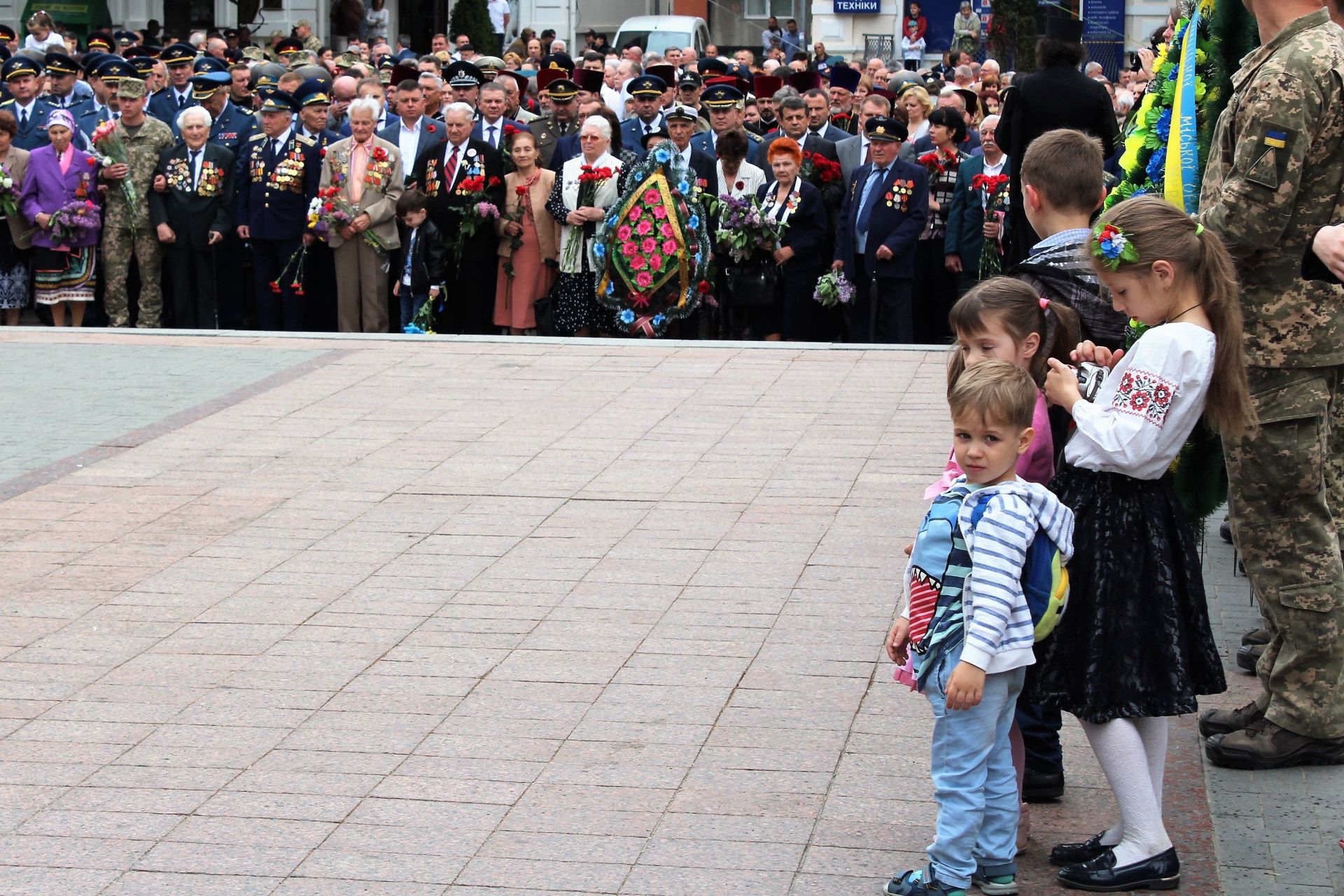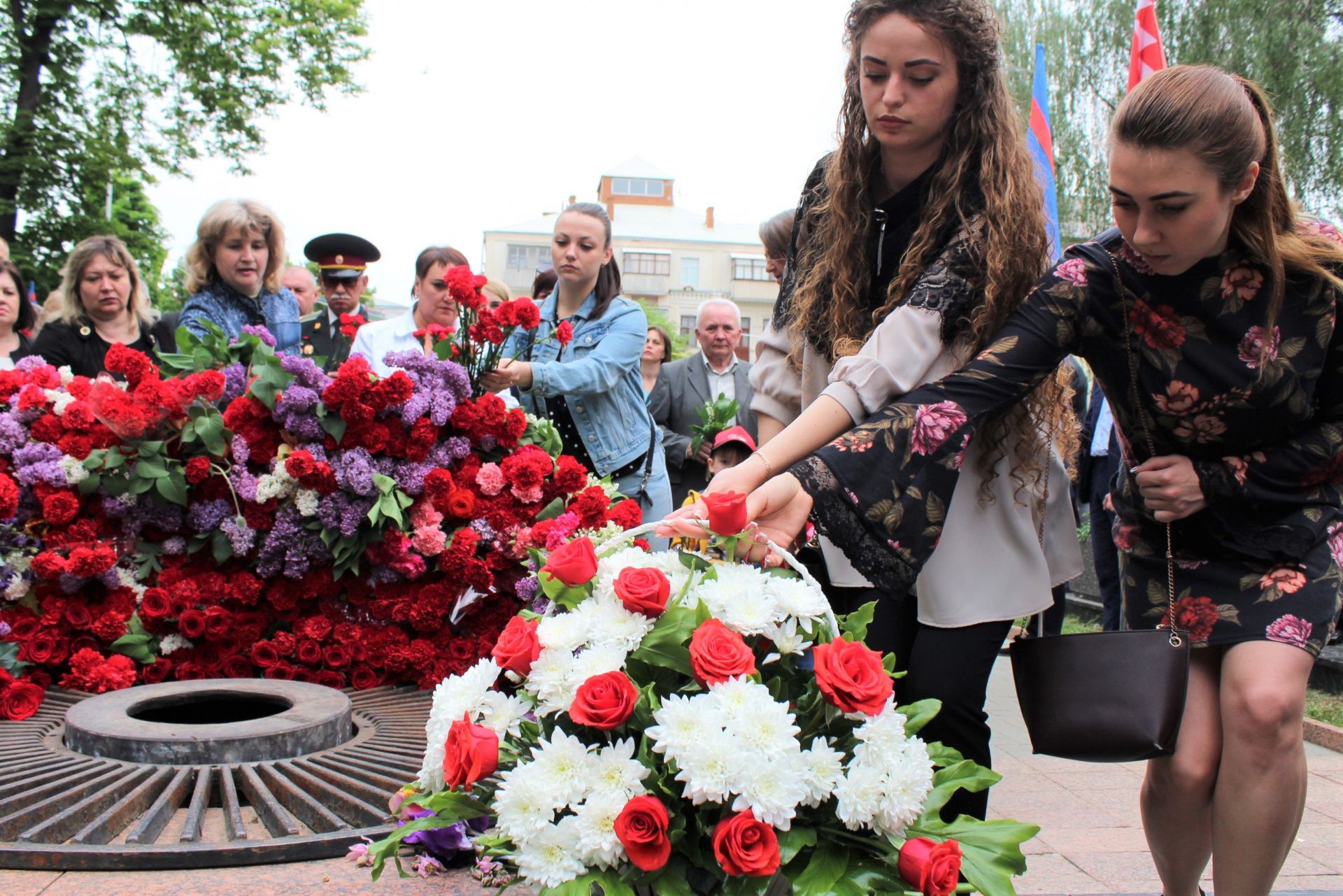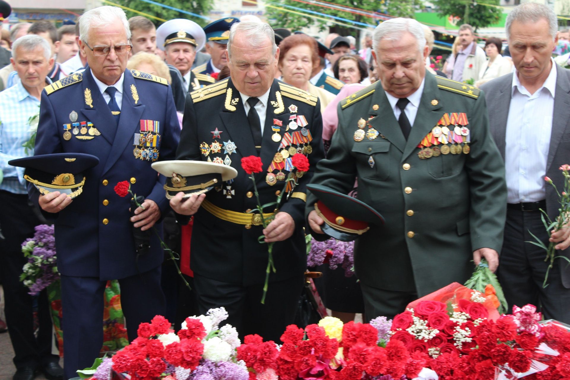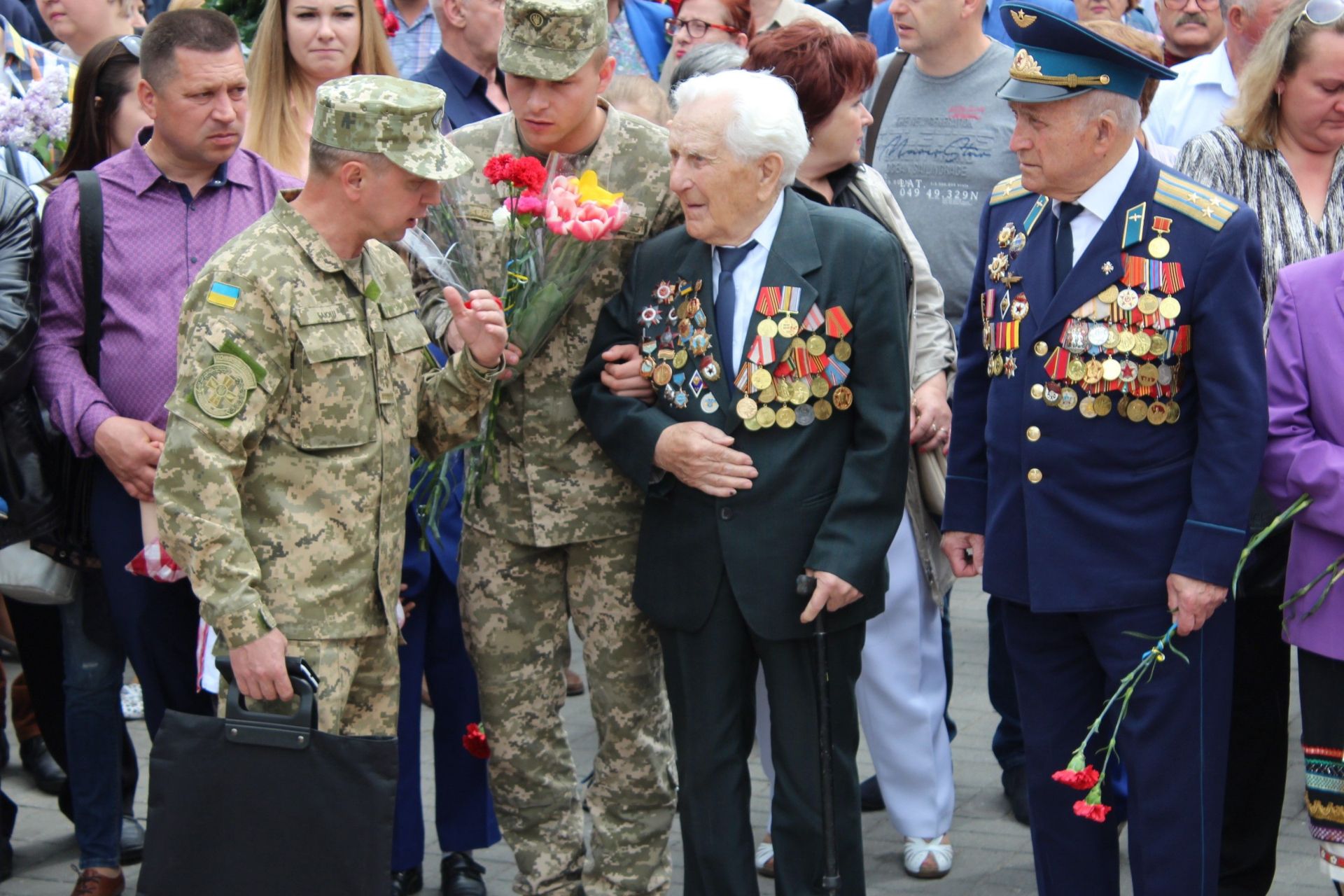 Близько 11-ої години розпочалися урочисті заходи. Спочатку квіти понесли до пам’ятного знаку загиблим та ветеранам в АТО, а потім — до Меморіалу слави. Невеликі букети троянд, гвоздик та бузку поклали чиновники, церковники, ветерани Афганістану, АТО, нечисленні ветерани Другої світової війни та інші люди.