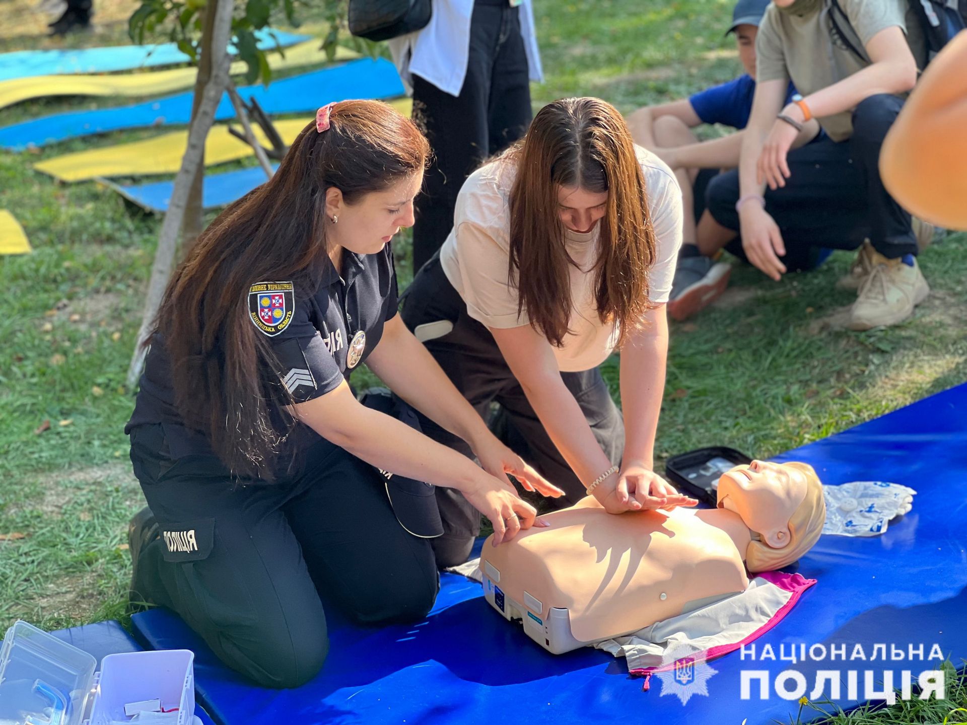 Інструктори з особистої безпеки Тренінгового центру обласного главку продемонстрували учасникам заходу майстер-клас із тактики самозахисту, ділились навичками надання першої домедичної допомоги, які у перші хвилини можна врятувати людське життя.
