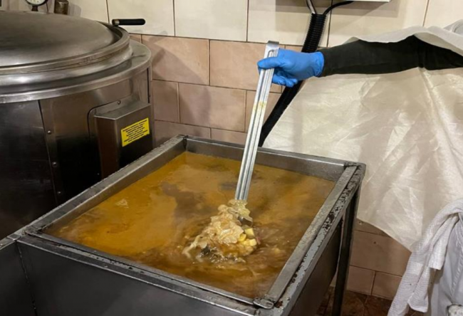 Їдальня оснащена всім необхідним обладнанням: овочерізкою, морозильними камерами, електром’ясорубкою та іншими приладами для приготування їжі. Вода для полонених подається з власної артезіанської свердловини — близько 31–33 кубічних метрів на добу, що забезпечує табір питною водою у повному обсязі.