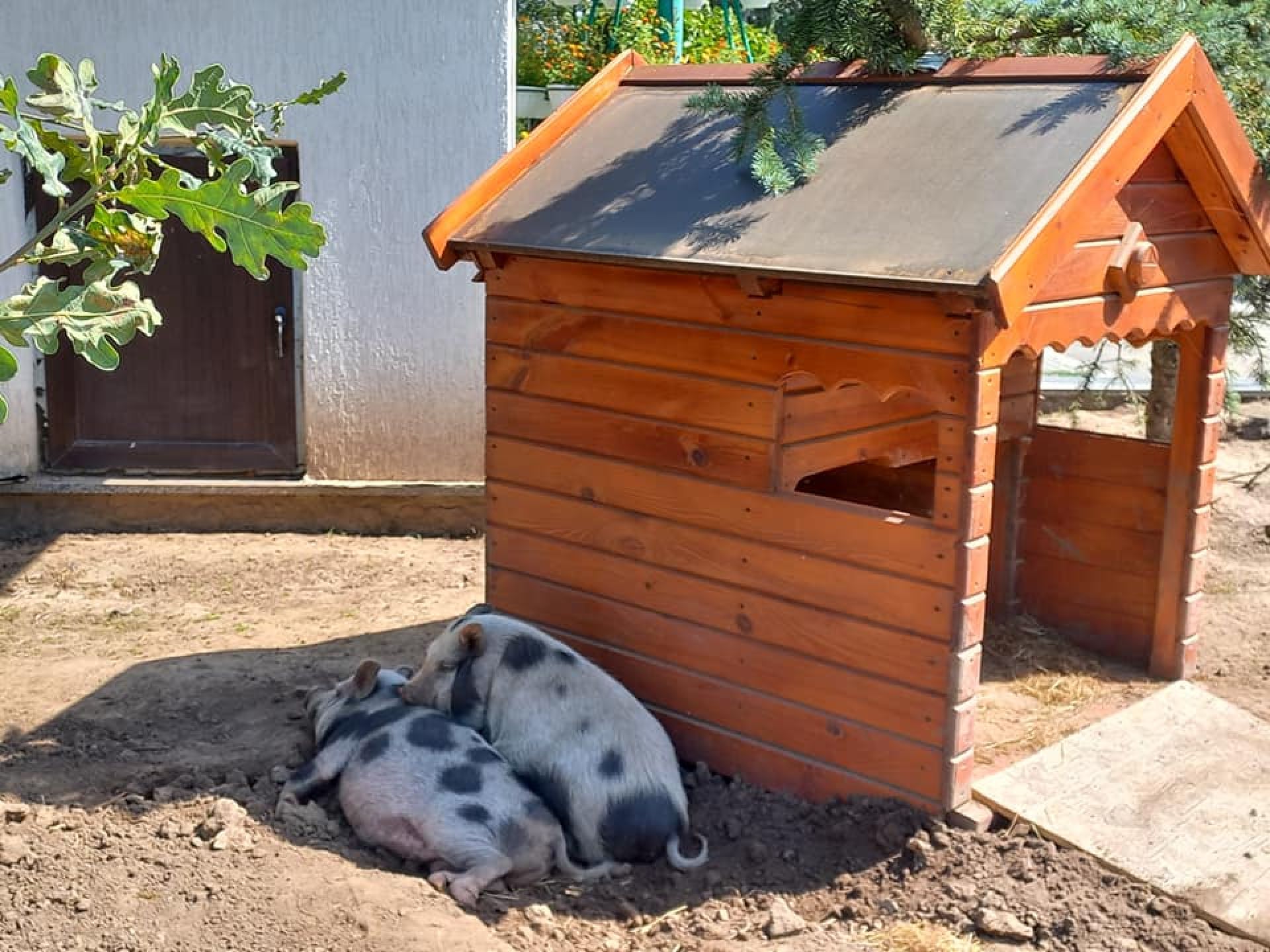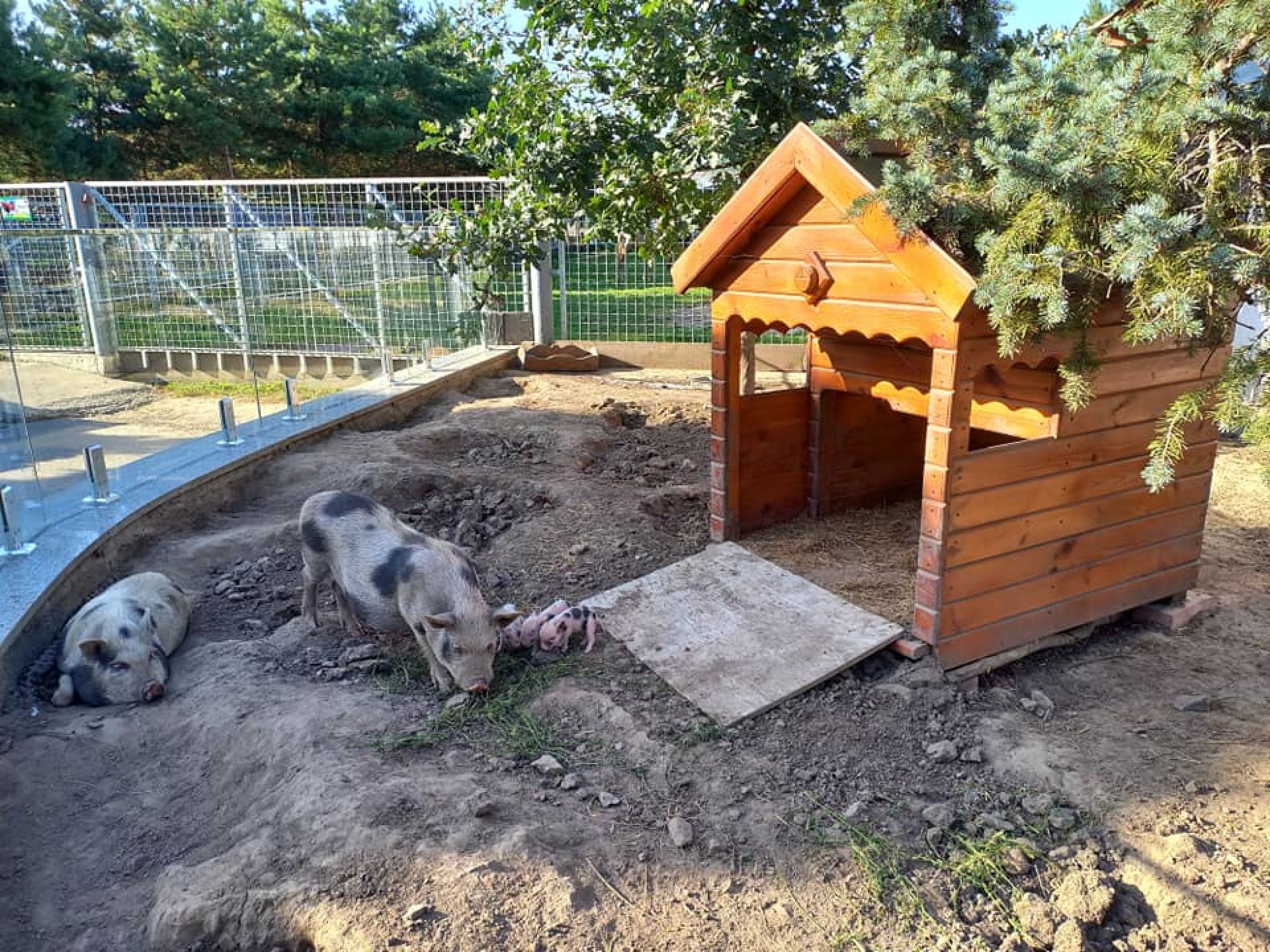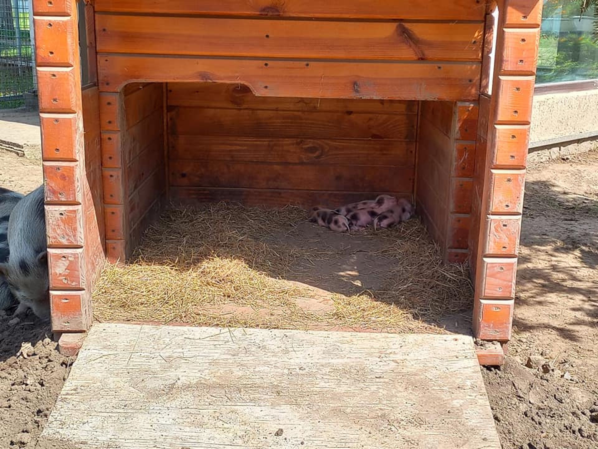 Милі фото кабанчиків опублікував Подільський зоопарк. Дитинчата дуж маленькі і за розміром нагадують морських свинок. День вони проводять у будиночку, розлігшися на соломі. Більшість часу поки сплять. Батьки охороняють дитинчат поруч, влягаються у тіні біля будиночка.