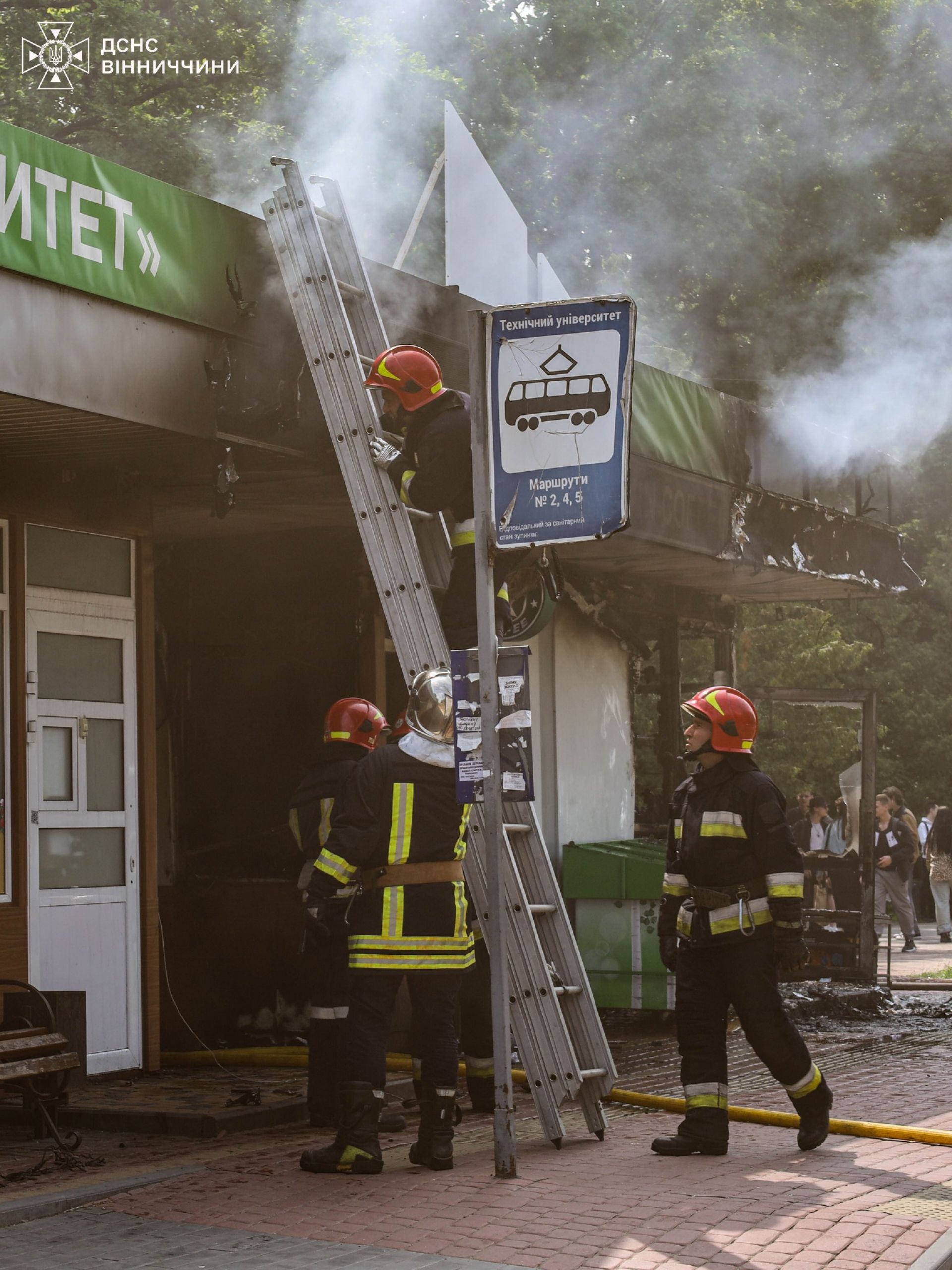 У середу, 11 червня, близько 15.00 у Вінниці спалахнула пожежа в кав'ярні, що розташована на зупинці громадського транспорту неподалік Вінницького Національного технічного університету. Рятувальники ліквідували загоряння, що супроводжувалося значним стовпом чорного диму. Постраждалих внаслідок інциденту немає, причини загорання наразі встановлюються.