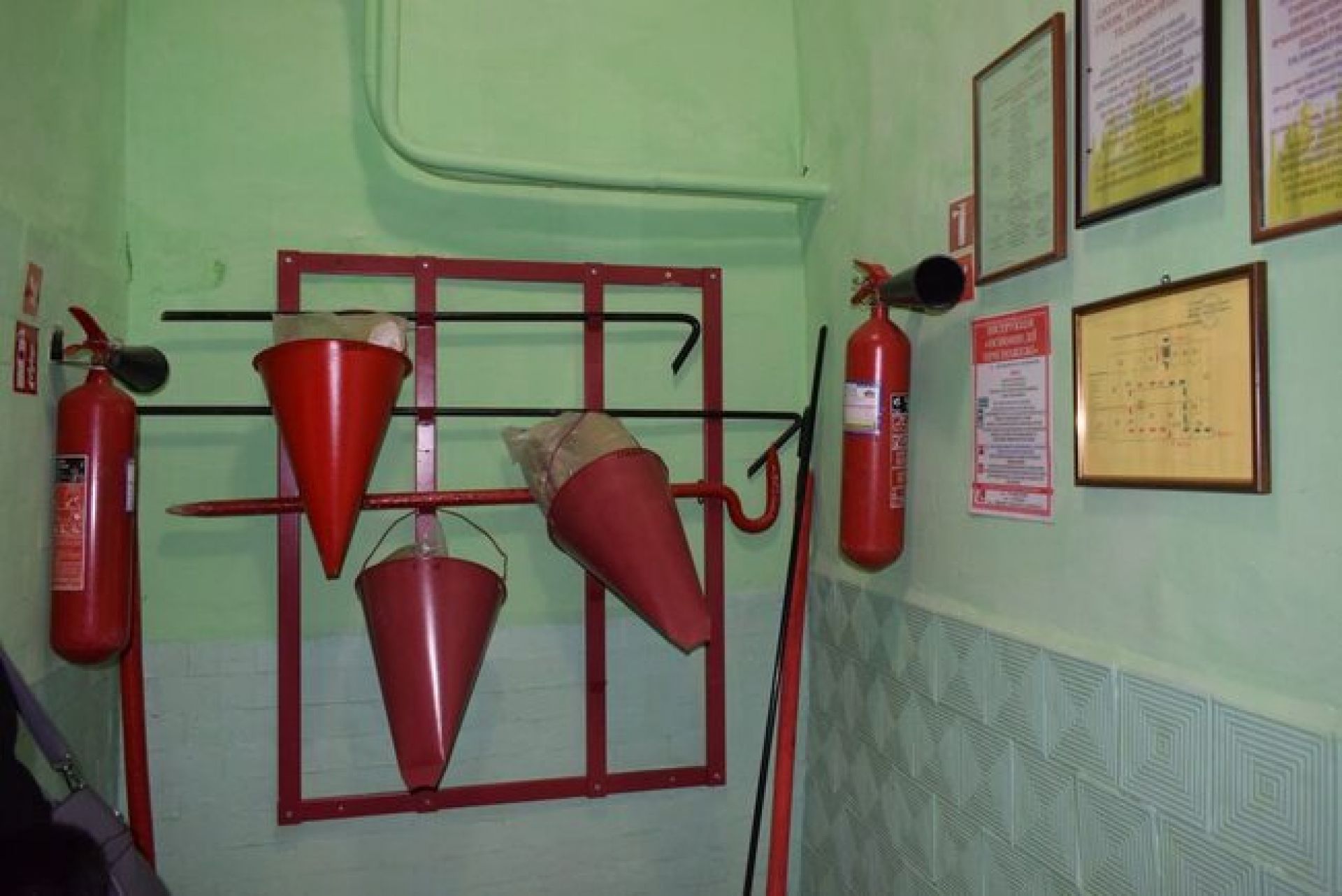 - Неналежні умови: вологі плями на підлозі, відсутність технічної та питної води, відсутні засоби пожежогасіння, шанцевого інструменту та достатньої кількості місць для сидіння.
