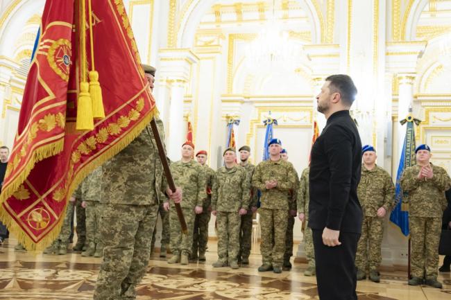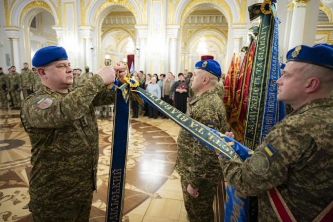 Президент також вручив бойові прапори командирам 144-ї окремої механізованої бригади, 412-ї окремої бригади безпілотних систем Nemesis та 1121-го навчального зенітного ракетно-артилерійського полку.