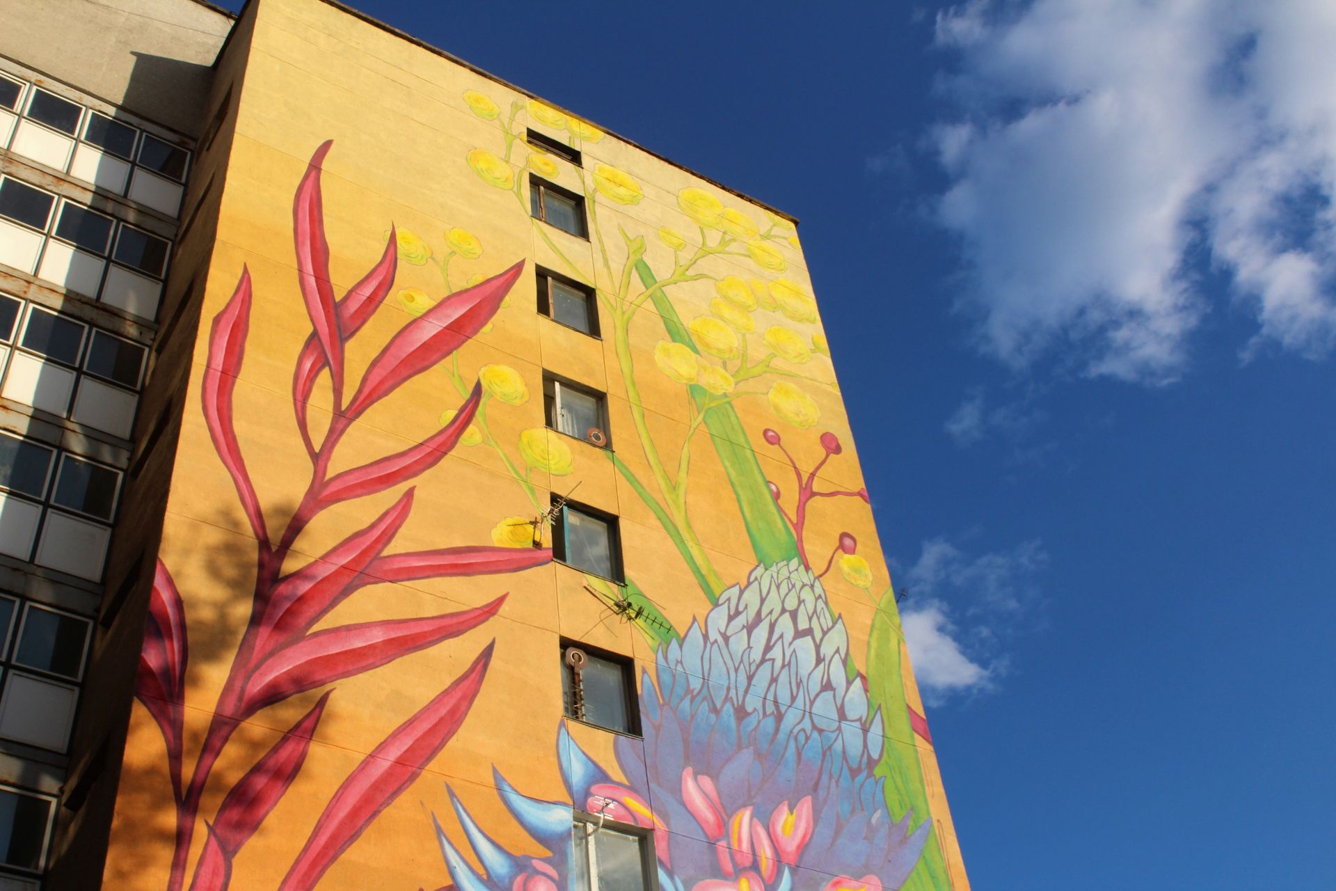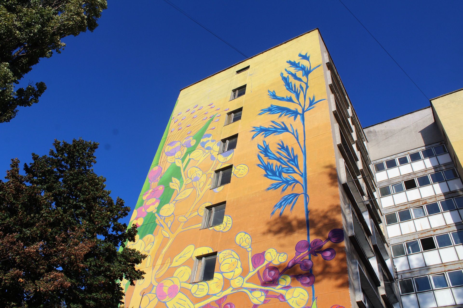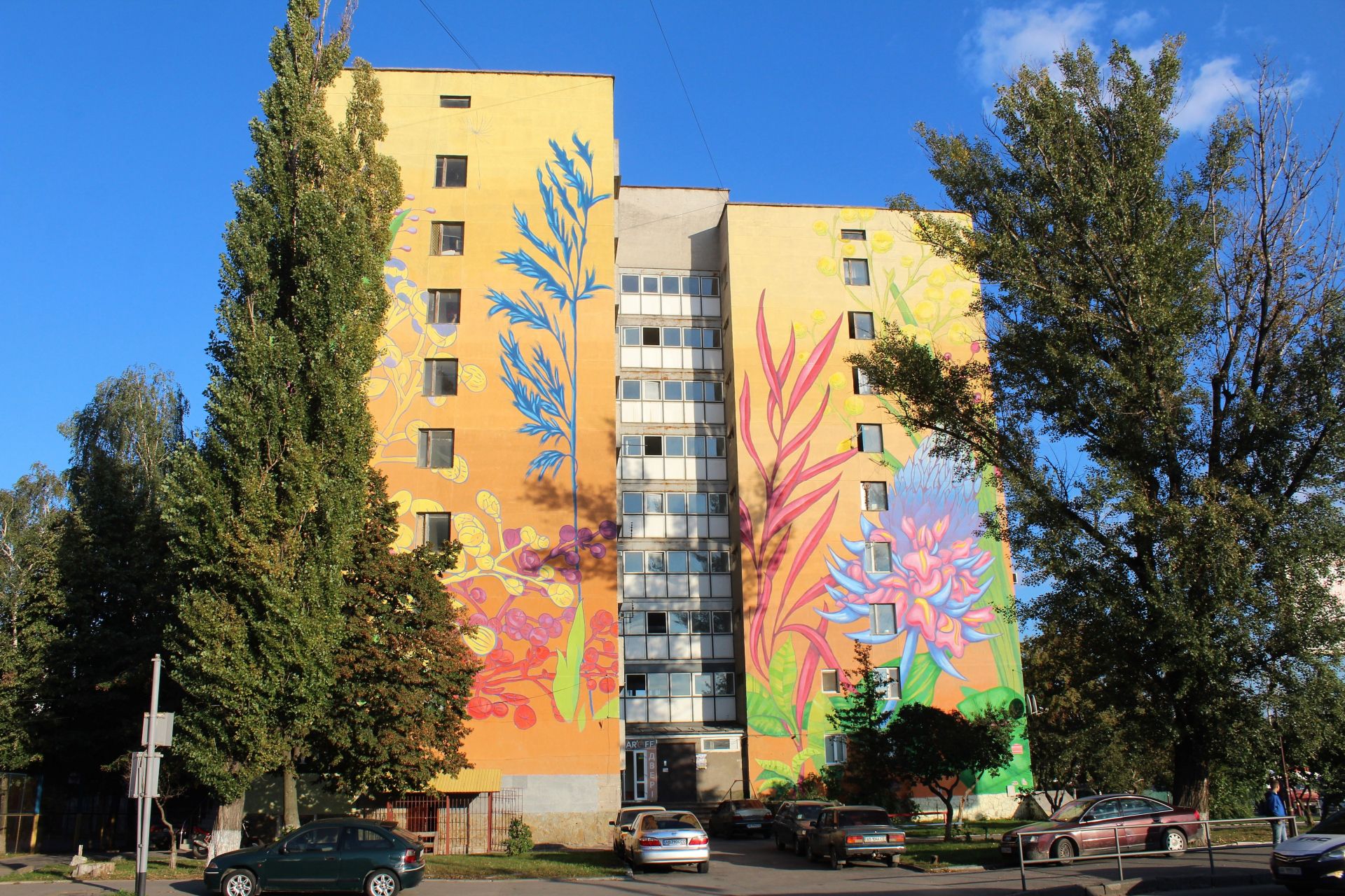 Нещодавно завершили найбільший мурал-арт за цей рік. Ним став «Фантастичний гербарій». Малюнок з рослинами та квітами, які важко віднести до якогось конкретного типу флори, розмістили одразу на двох стінах дев’ятиповерхівки на Замостянській, 59. Орієнтовно, висота цього малюнку — 27 метрів!