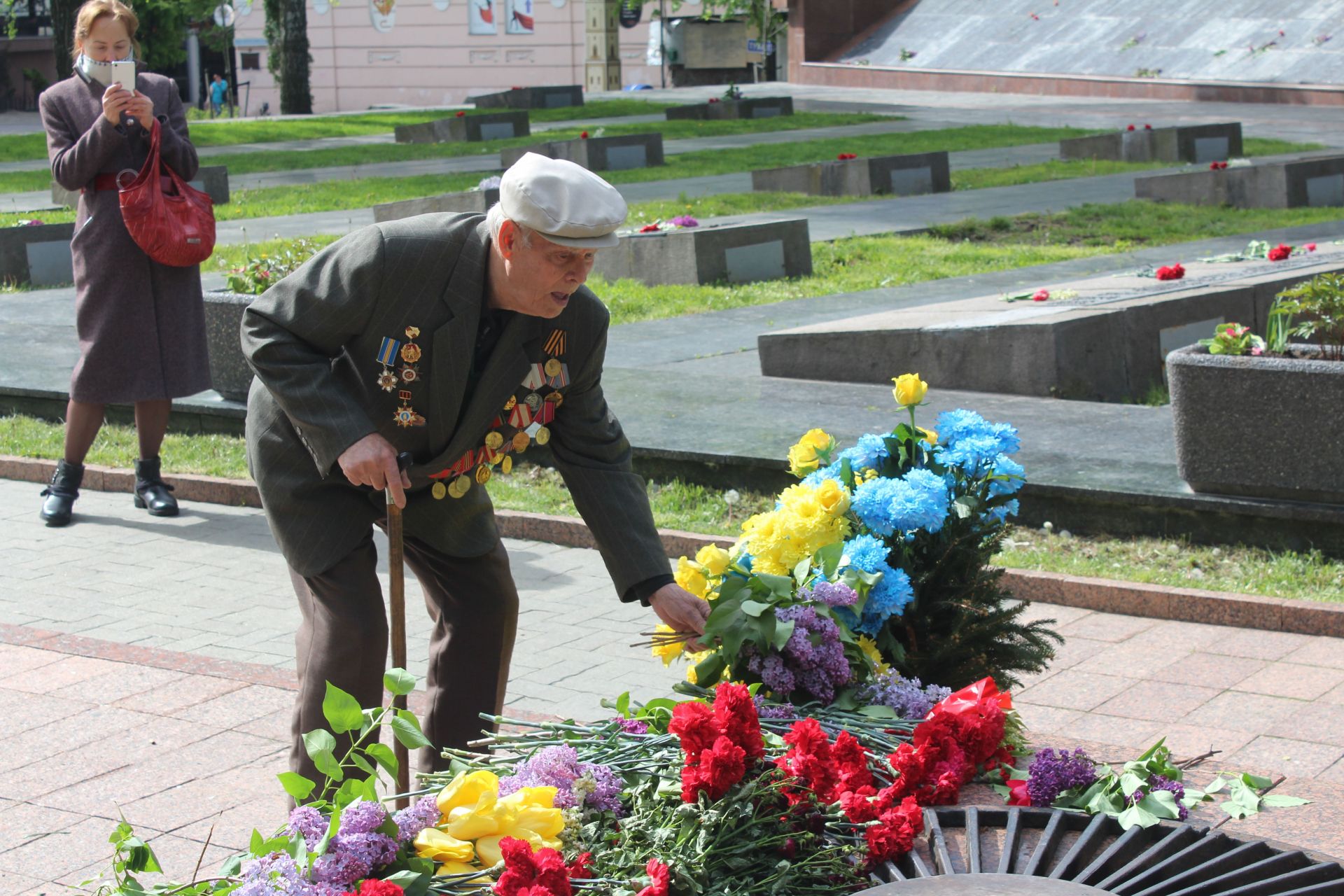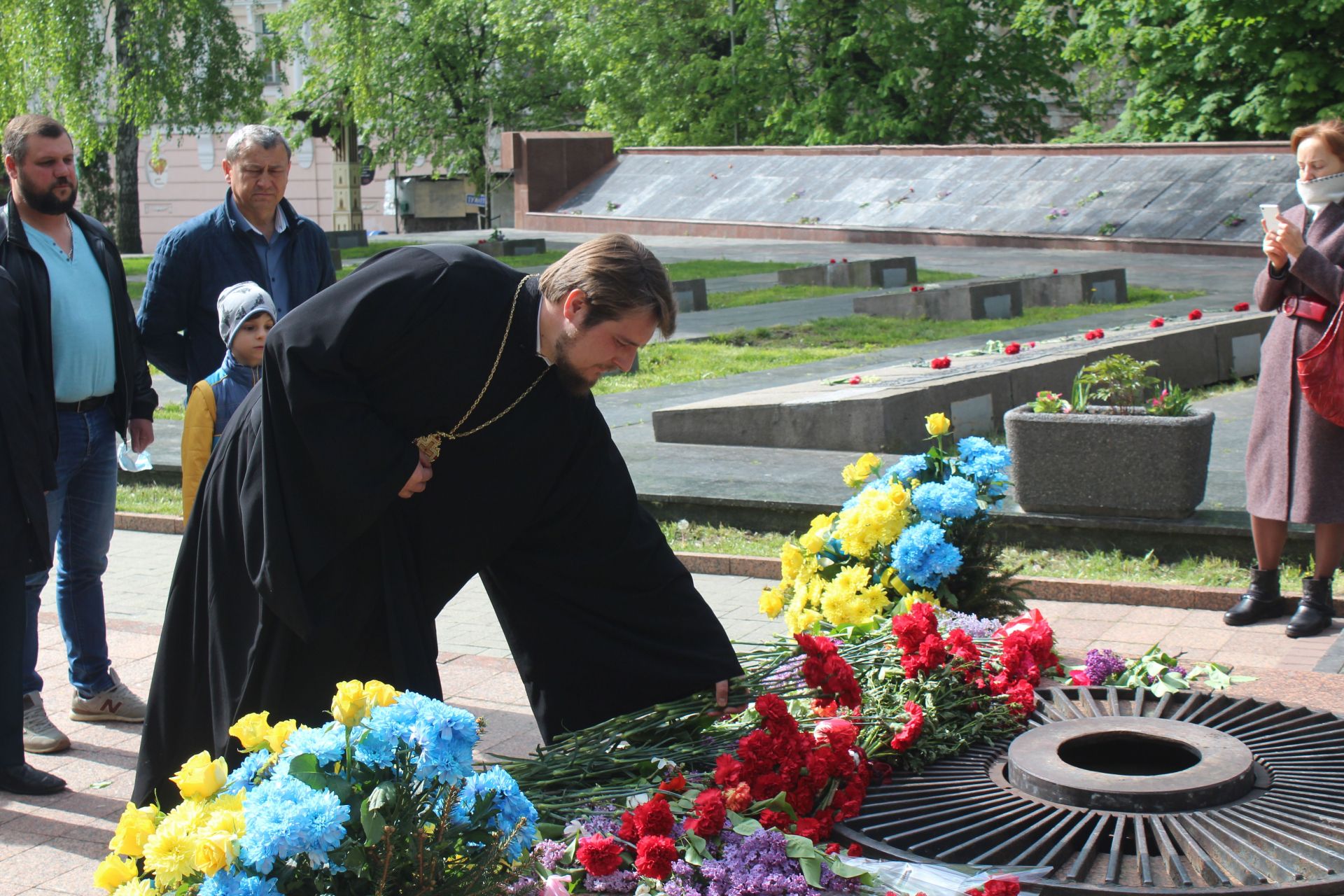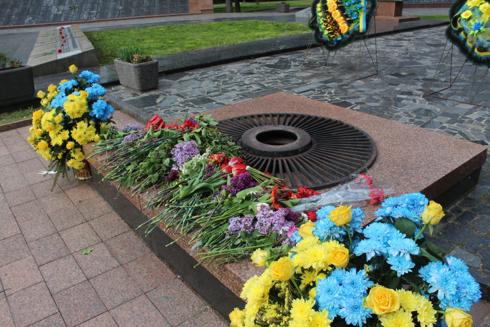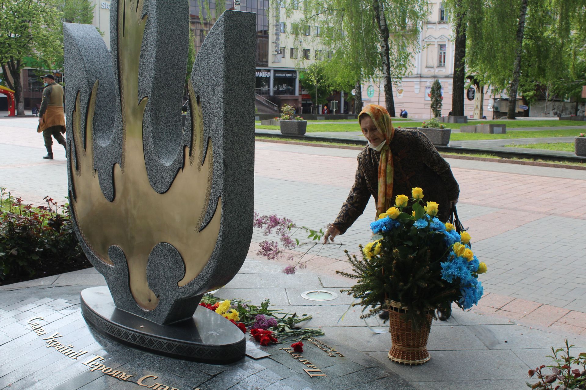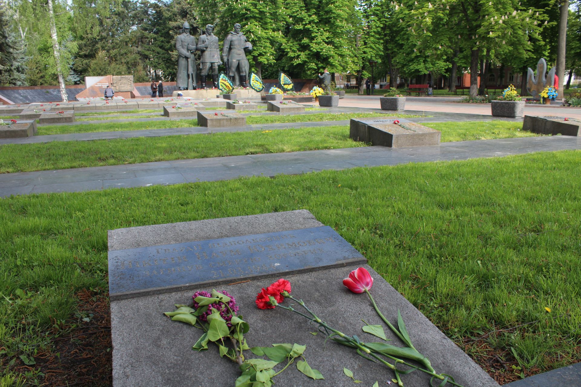- Люди невеликими групами поклали квіти біля Вічного вогню та на могили, що на Європейській площі.