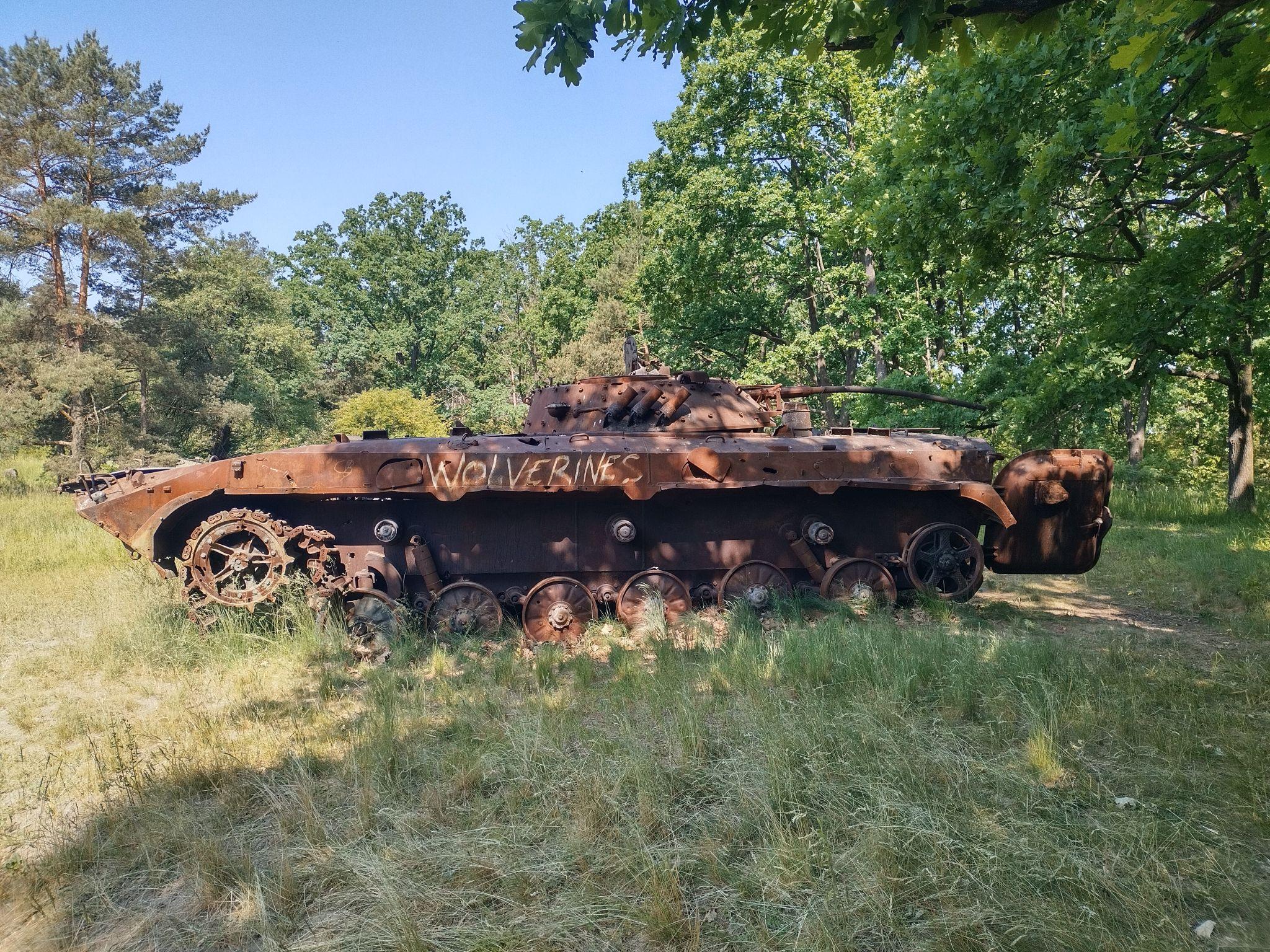 Поряд зі знищеними бункерами Вервольфу — знищена російська техніка сучасної російсько-української війни. Це як нагадування, що вороги, як приходять на нашу землю, рано чи пізно закінчують однаково.
