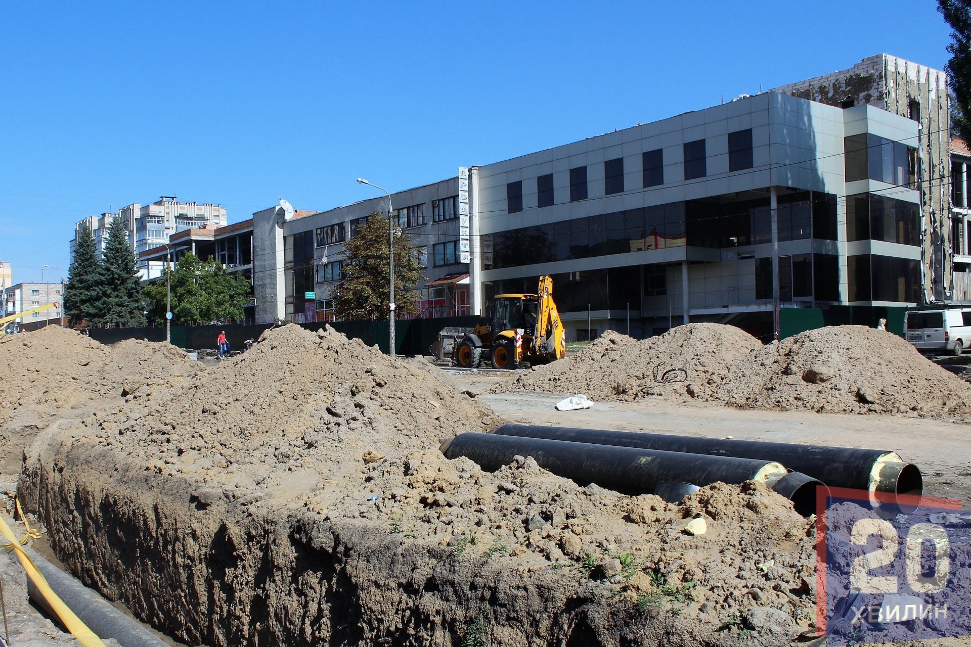 Поряд з Космонавтів-3 працюють будівельники, які мають знести довгобуд, колишній ресторан «Кельце». Вони вже «оточили» будівлю зеленим парканом. А в середині будівлі, де раніше мешканці Вишеньки ставили машини, ріжуть металеві частини довгобуду.