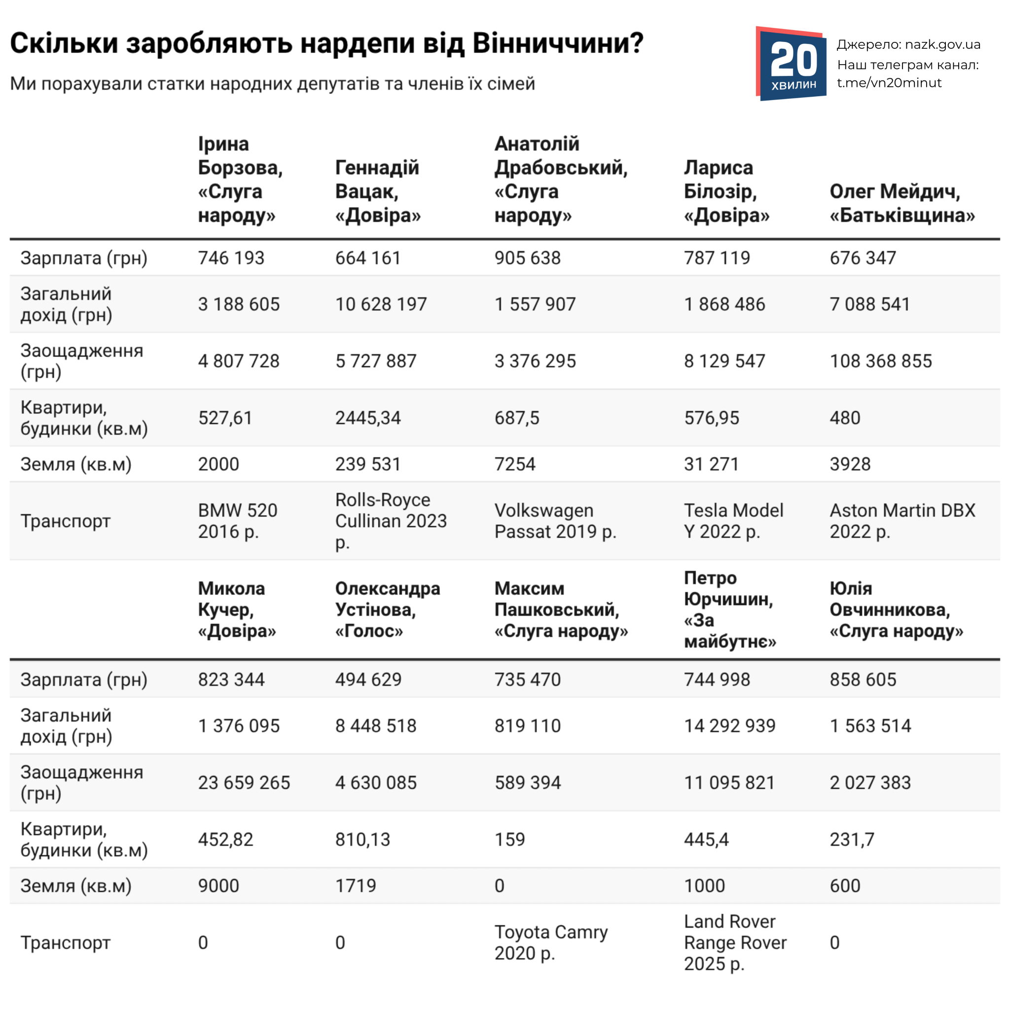 Вінницьку область представляють 10 народних депутатів України. Що вони задекларували? Ми переглянули їхні доходи та статки. І виділили лідерів.