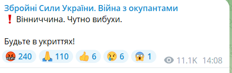 Вінниччина. Чутно вибухи. Будьте в укриттях!