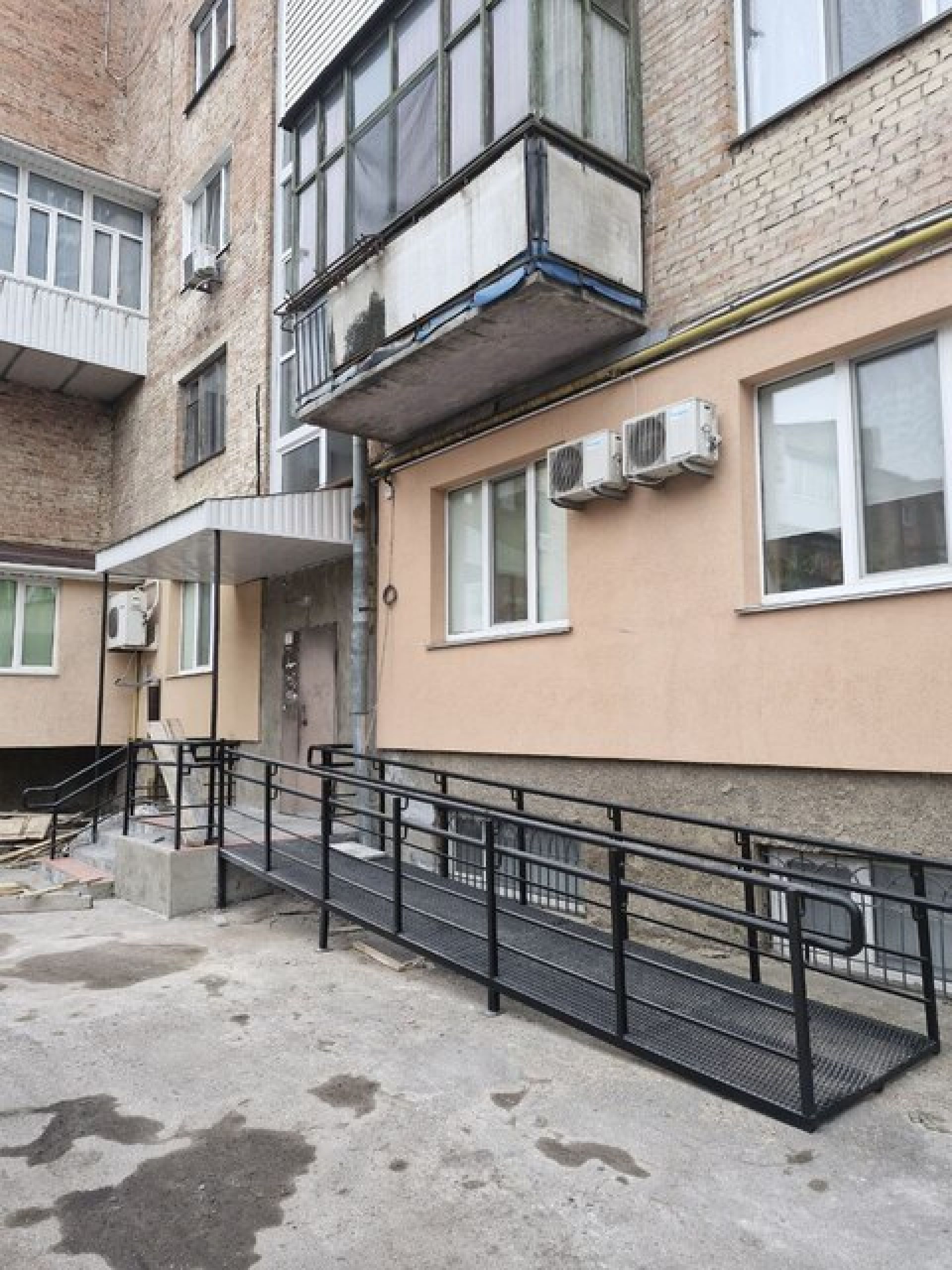 - Близько двох тижнів тому у п’ятиповерхівці на Театральній почали встановлювати великі пандуси для двох під’їздів.