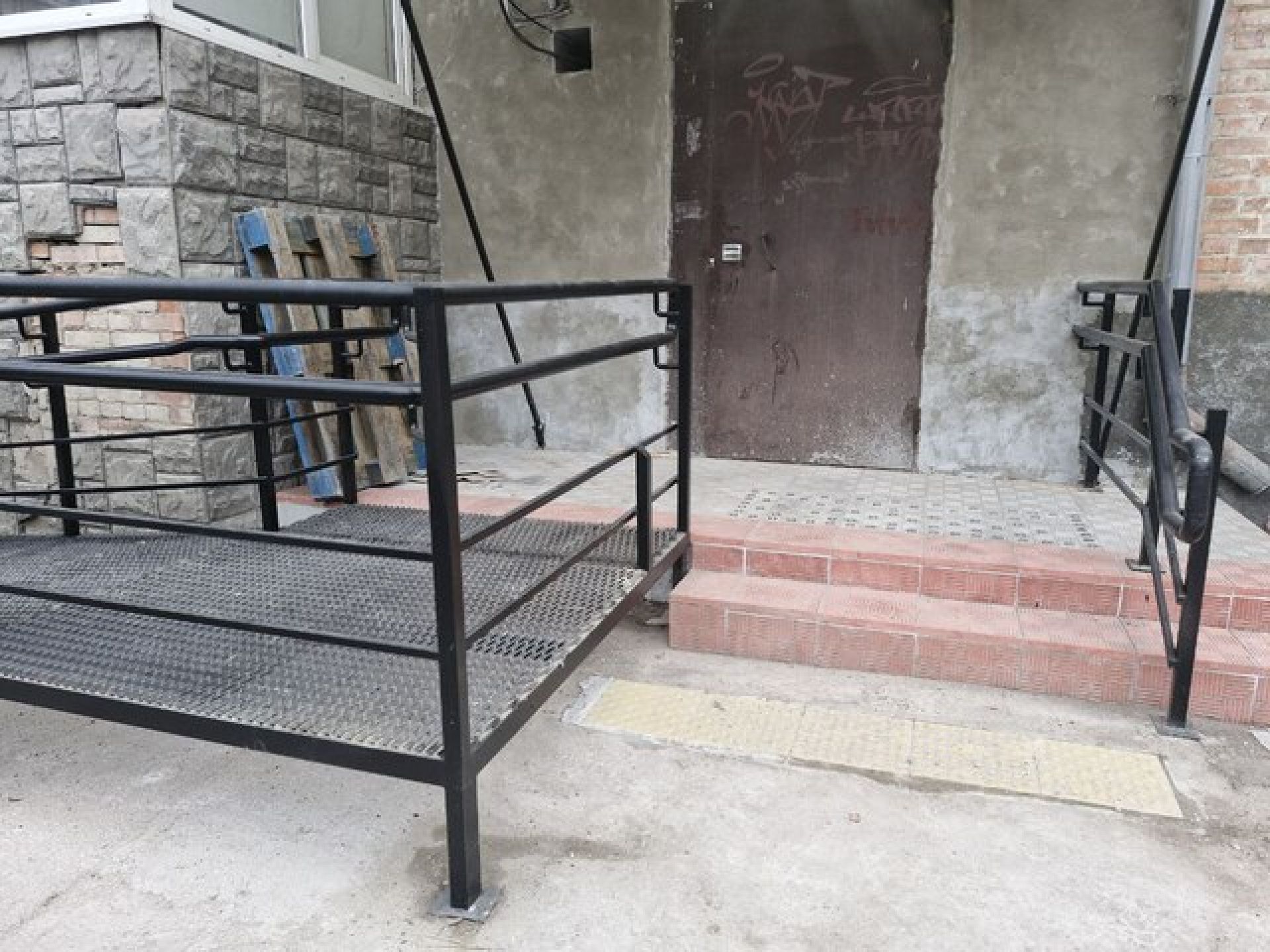 За його словами, один пандус облаштували для під’їзду з двома сходинками на цоколі, в іншому — для чотирьох сходинок. Водночас внутрішня інфраструктура будинку загалом залишається недоступною. Крім того, після монтажу конструкцій у дворі зменшилася кількість паркомісць, а територія нині захаращена будівельним сміттям. Пандуси, тактильну плитку та поручні вже змонтували, однак питання доцільності таких витрат, переконаний чоловік, досі лишається відкритим.