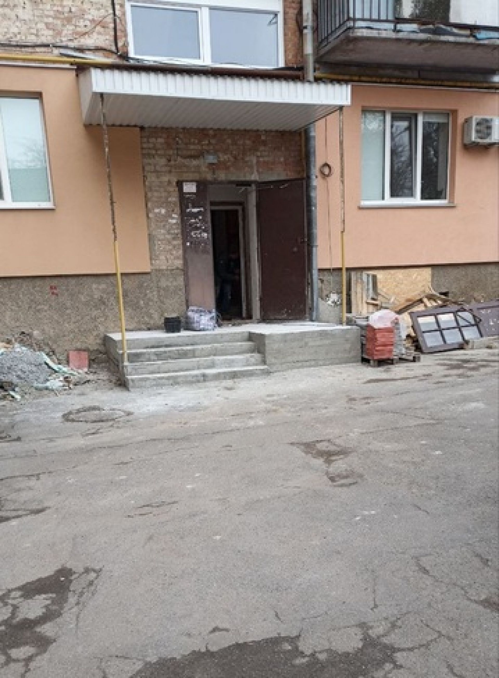 За ці кошти встановлюють пандуси біля першого та другого під’їздів, ремонтують ганки і входи до будинку, облаштовують нове огородження для сходів і пандусів, замінюють вхідні двері у тамбурах; оновлюють фасади в трьох під’їздах.