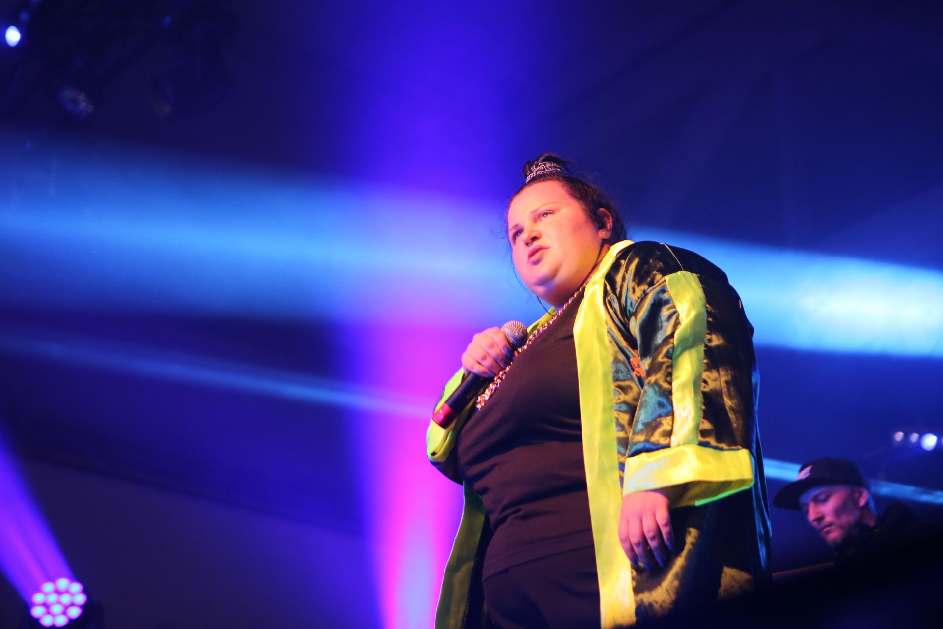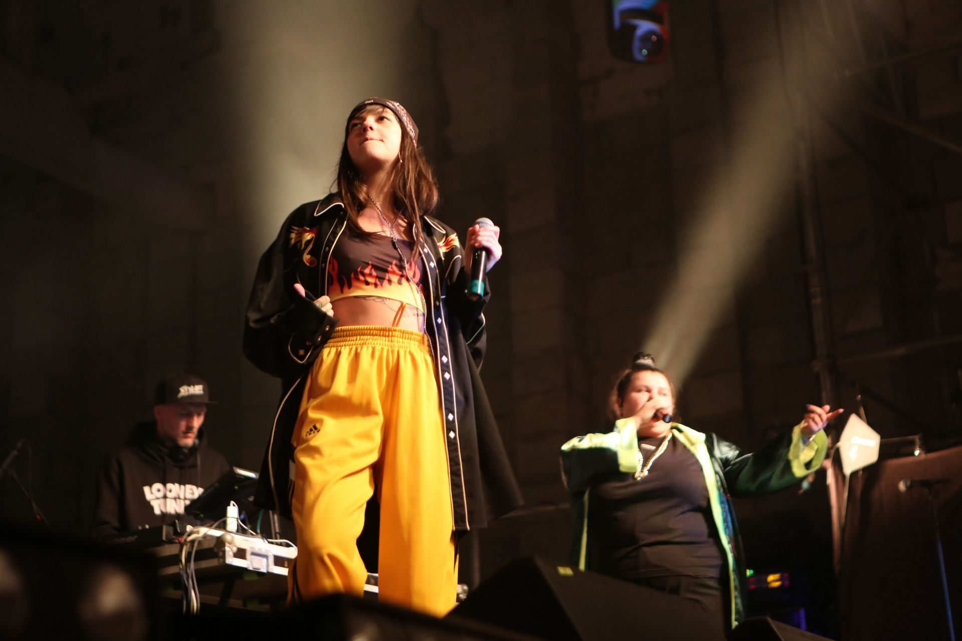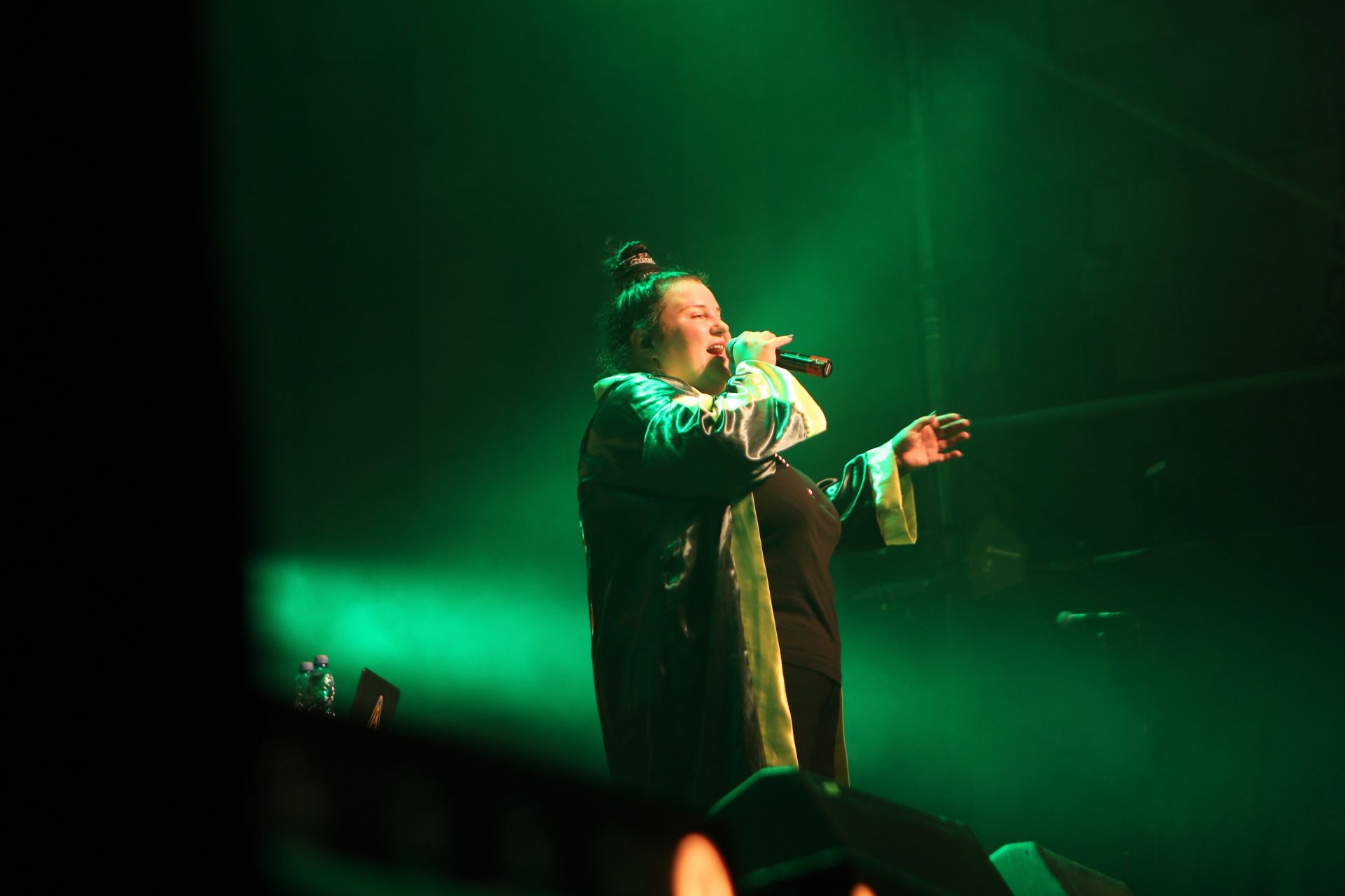 Після невеликої перерви зала Ангару вщерть наповнилася людьми, щоб послухати українську реперку Alyona Alyona. Виконавиця пісень — Альона Савраненко — стала відома завдяки пісні «Рибки», яку разом з друзями виклала у Youtube.